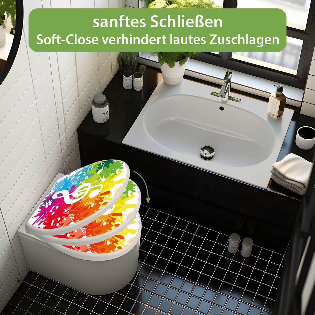 Toilettendeckel weiß mit Absenkautomatik Motiv Farbensymphonie
