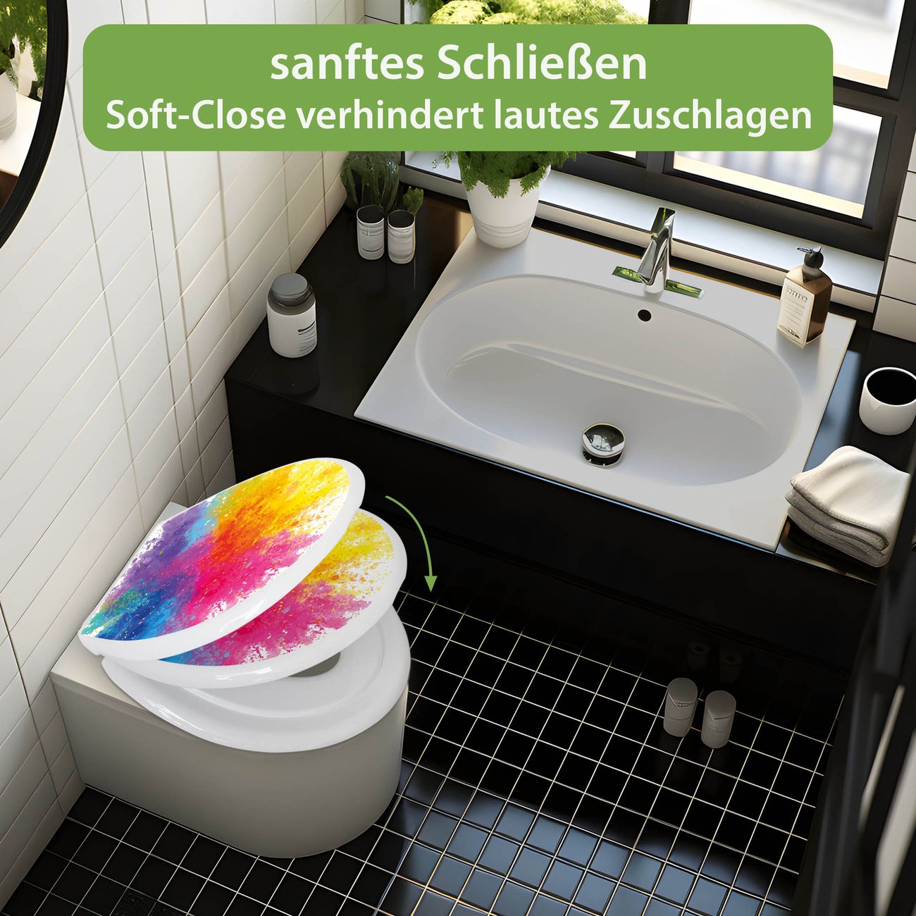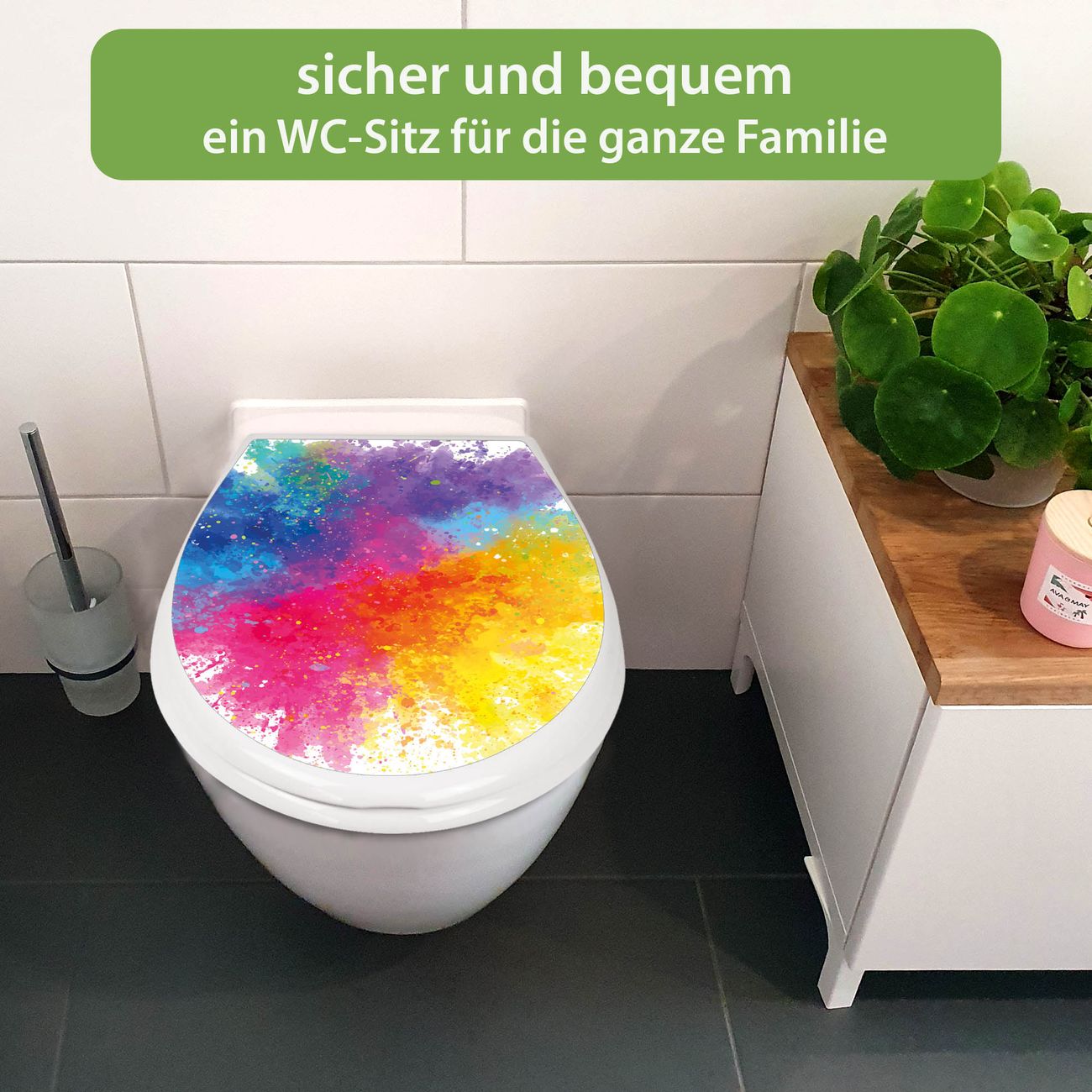 Toilettendeckel weiß mit Absenkautomatik Motiv Farbexplosion 2