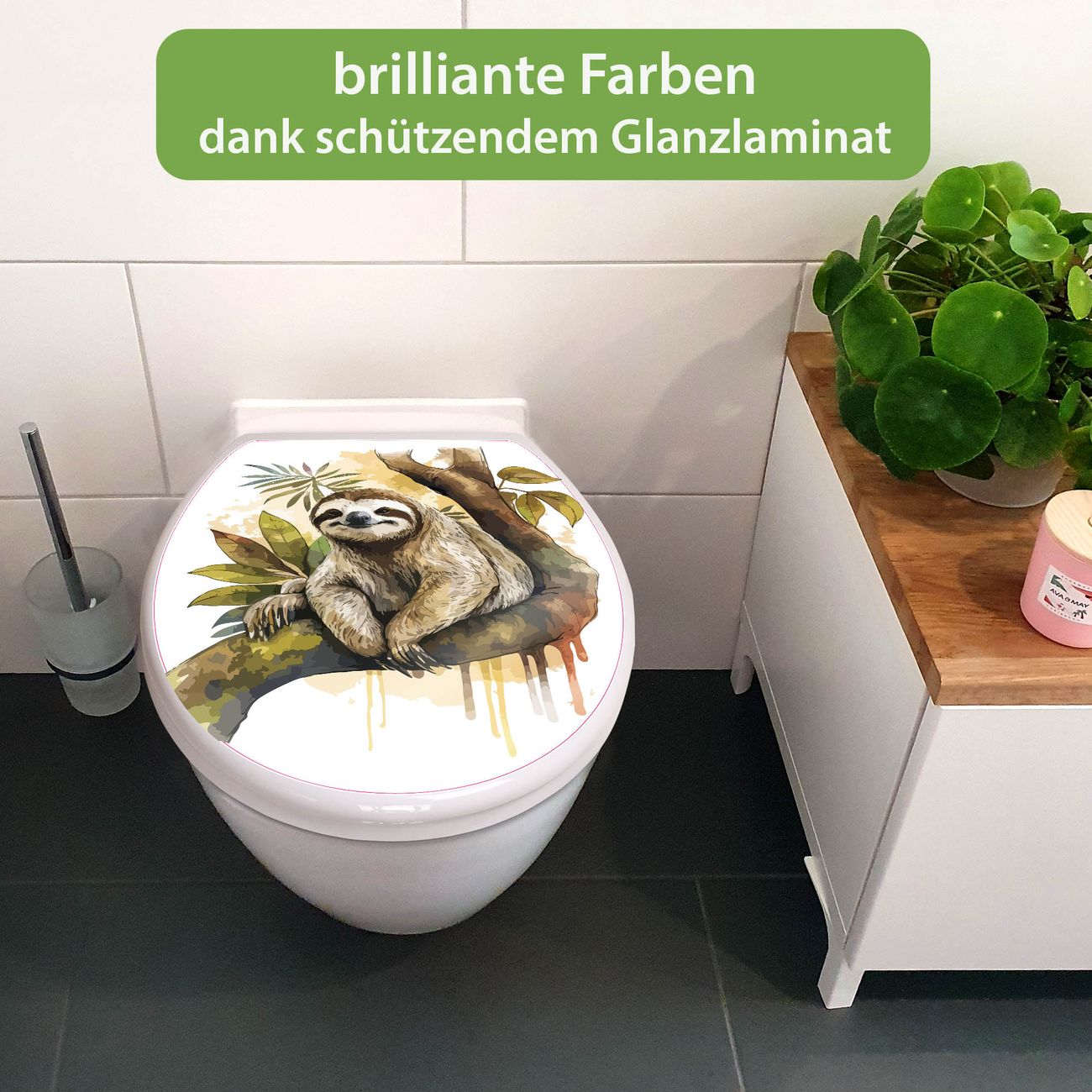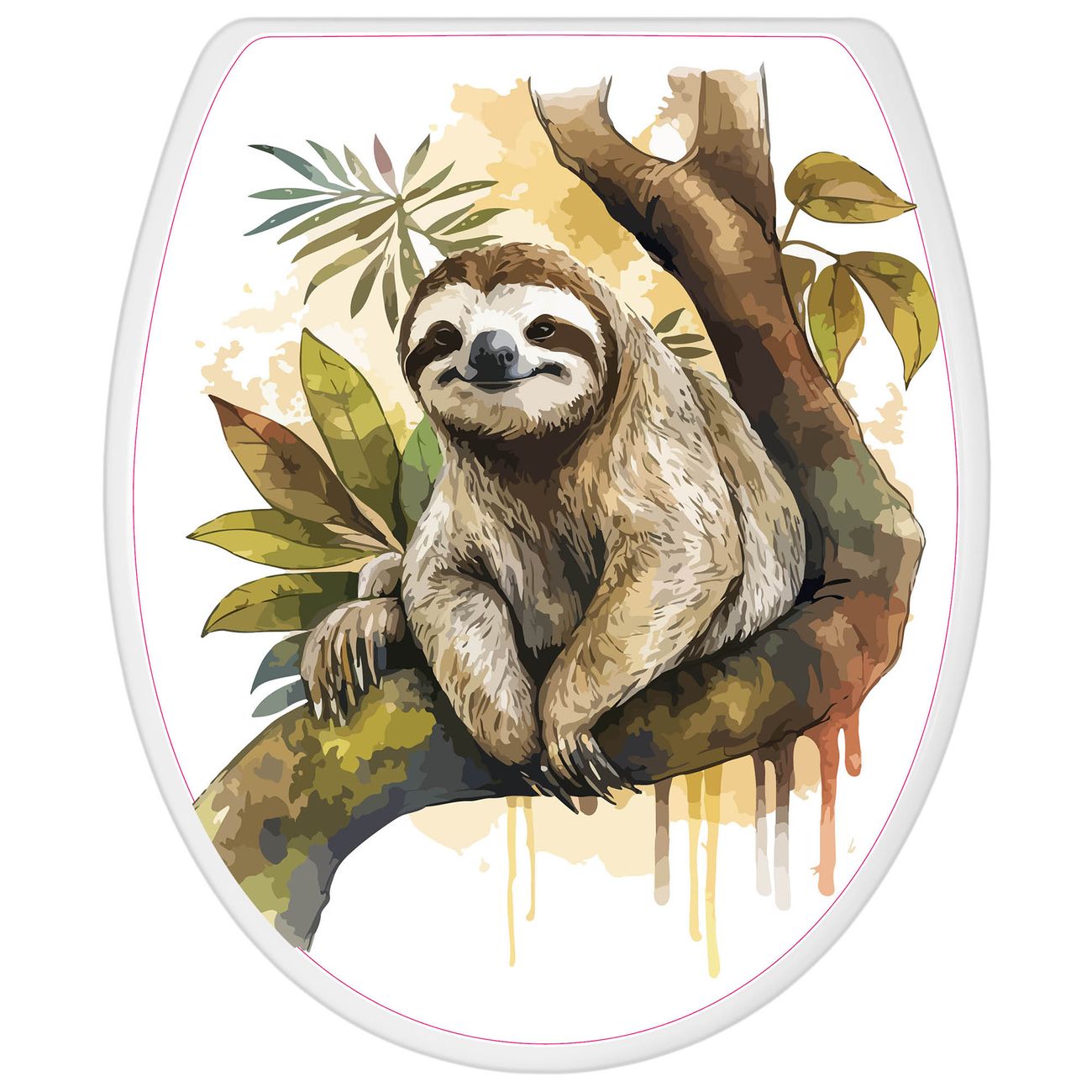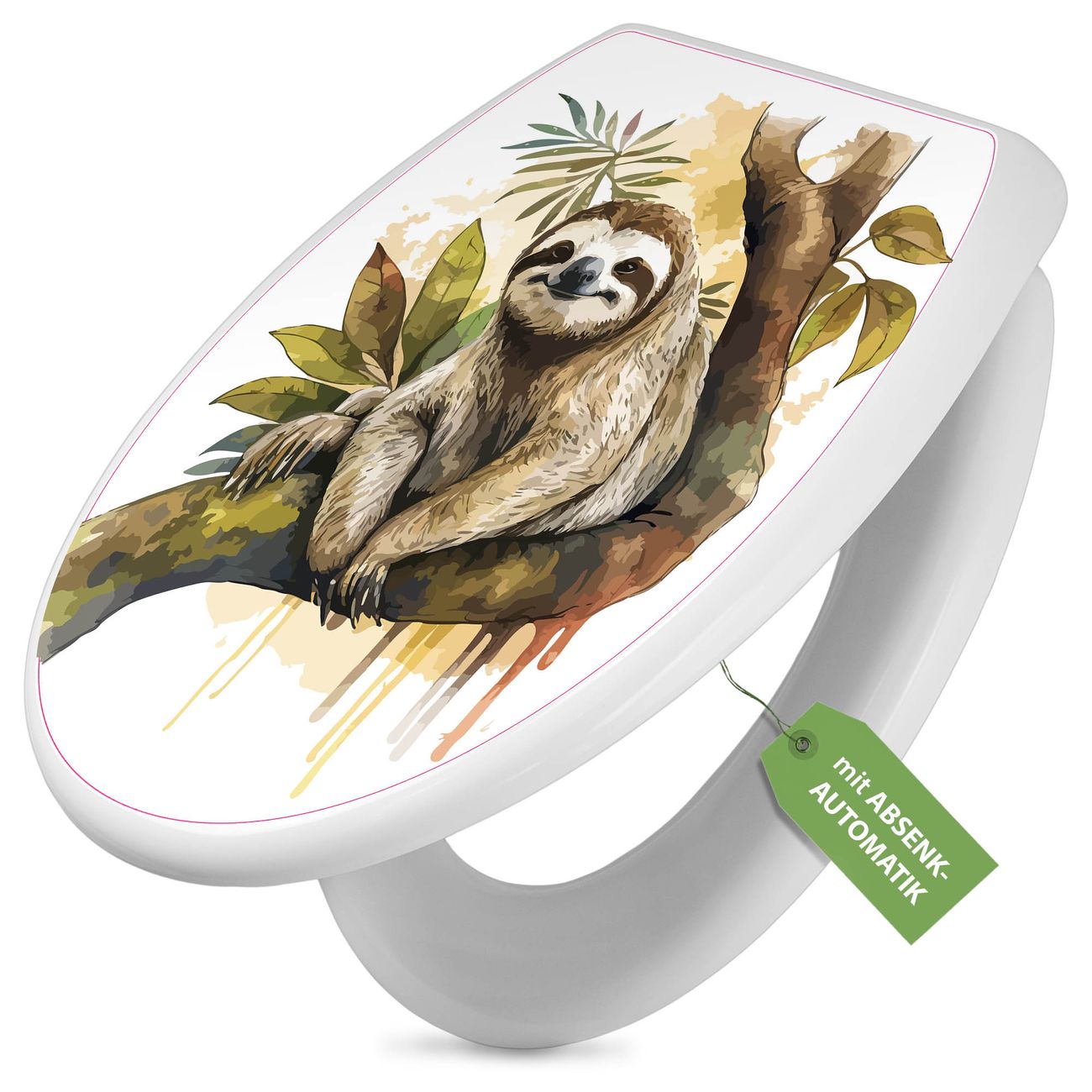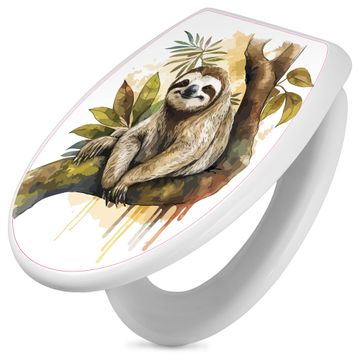 Toilettendeckel weiß mit Absenkautomatik Motiv Faultier mit Blütenmähne