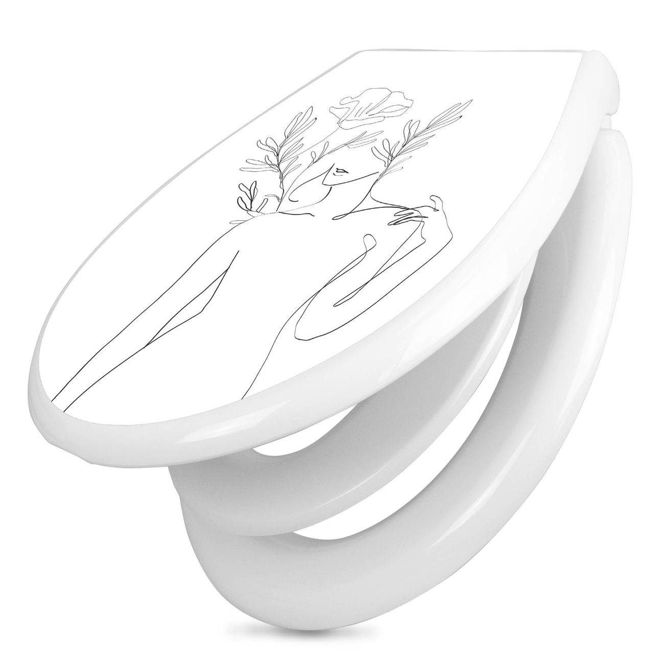 Toilettendeckel weiß mit Absenkautomatik Motiv Feminin Floral Lineart 2
