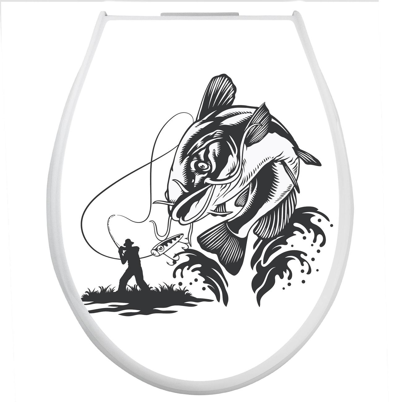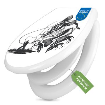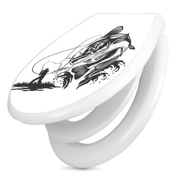 Toilettendeckel weiß mit Absenkautomatik Motiv Fischfang Abenteuer