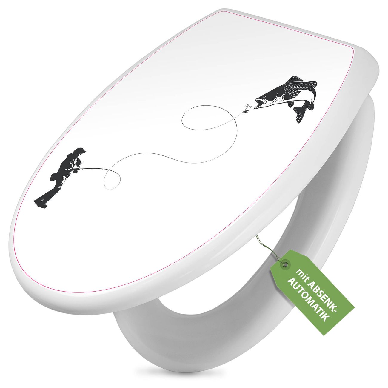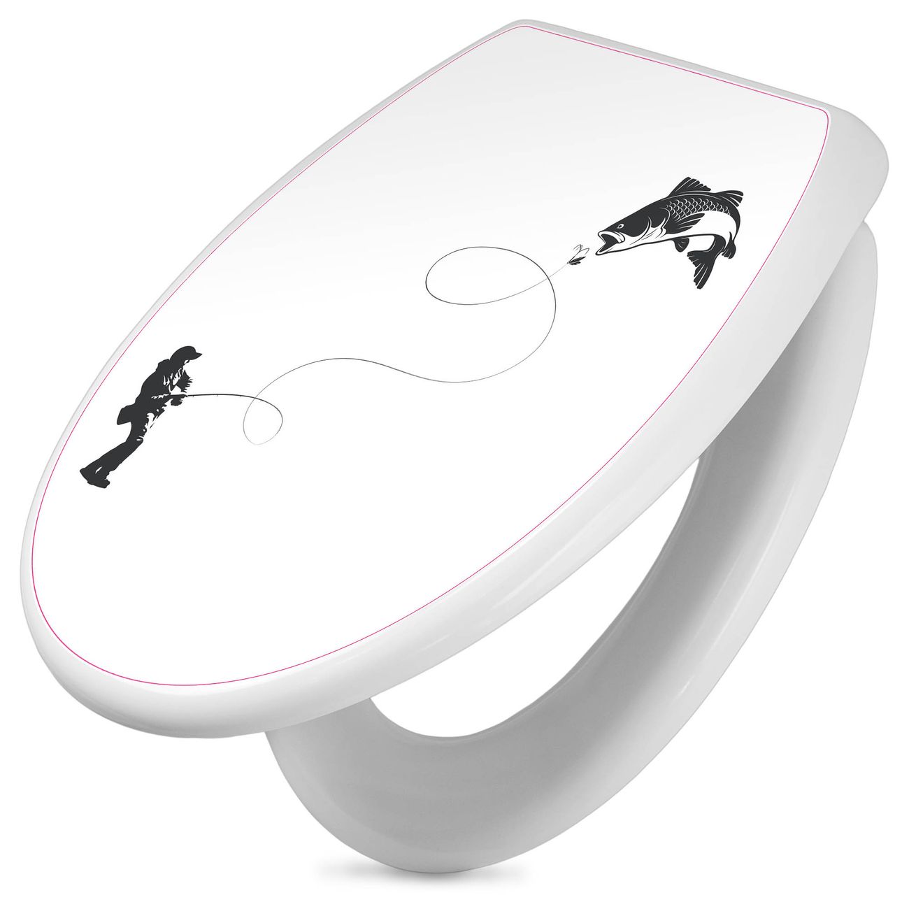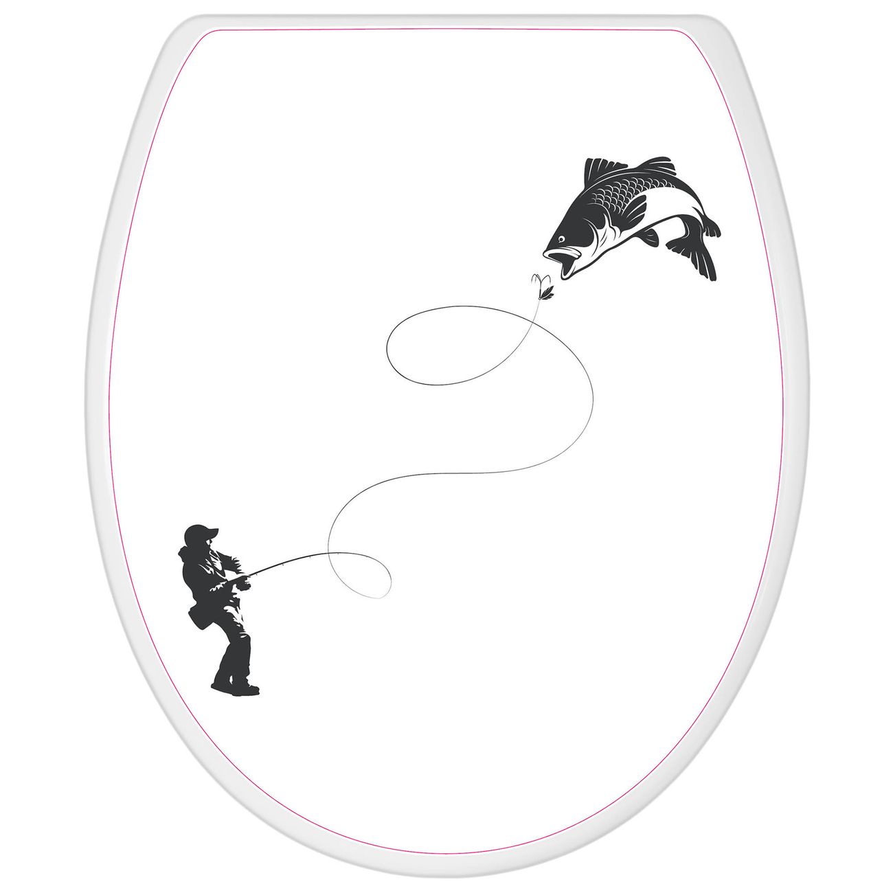 Toilettendeckel weiß mit Absenkautomatik Motiv Fischfang