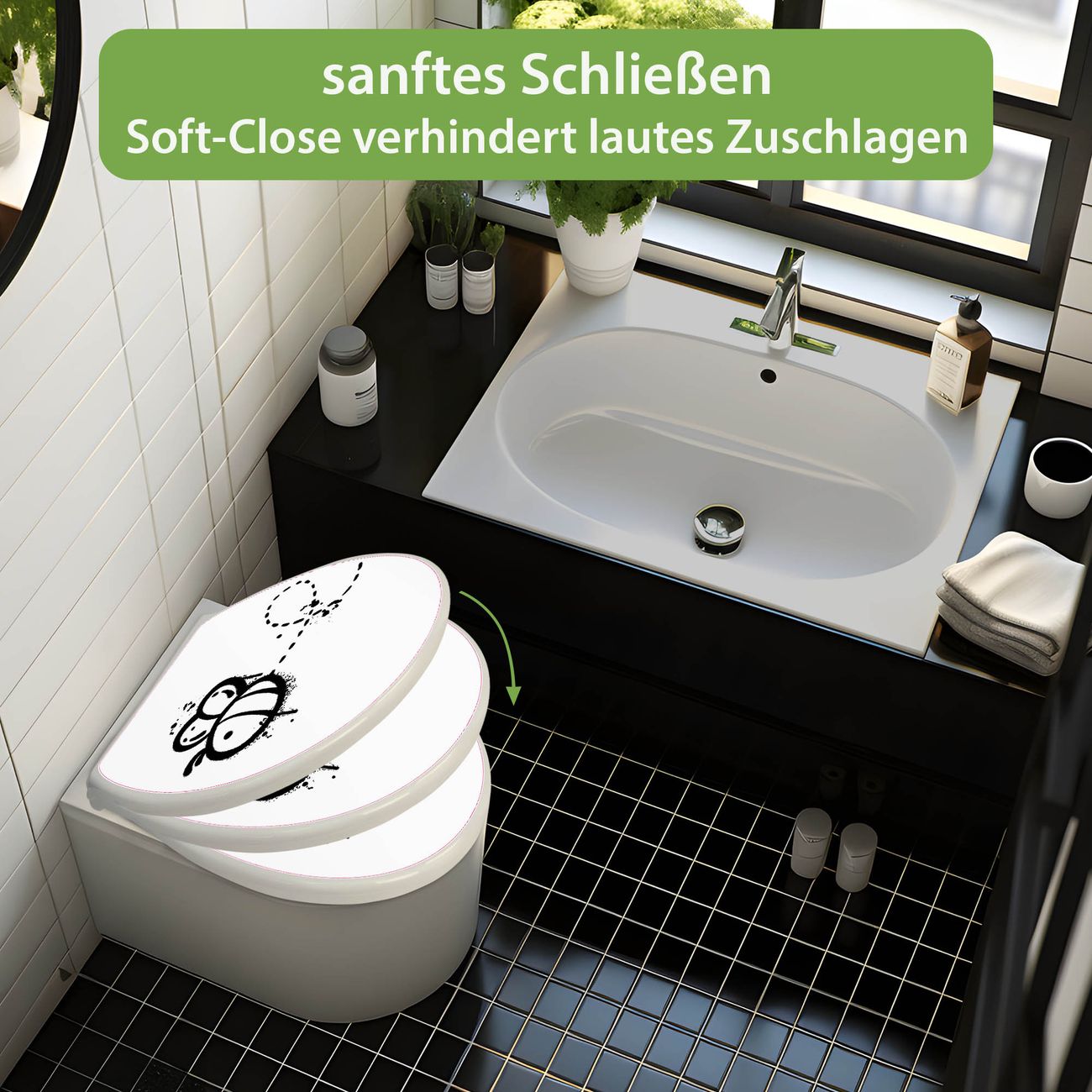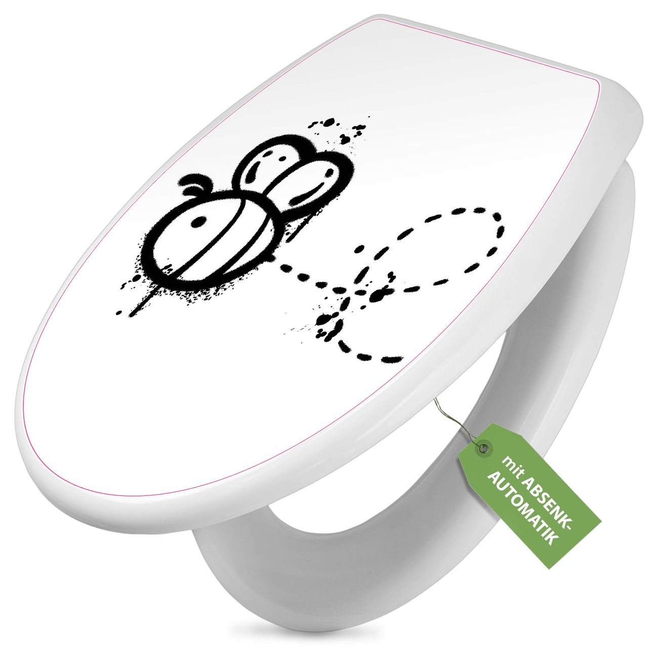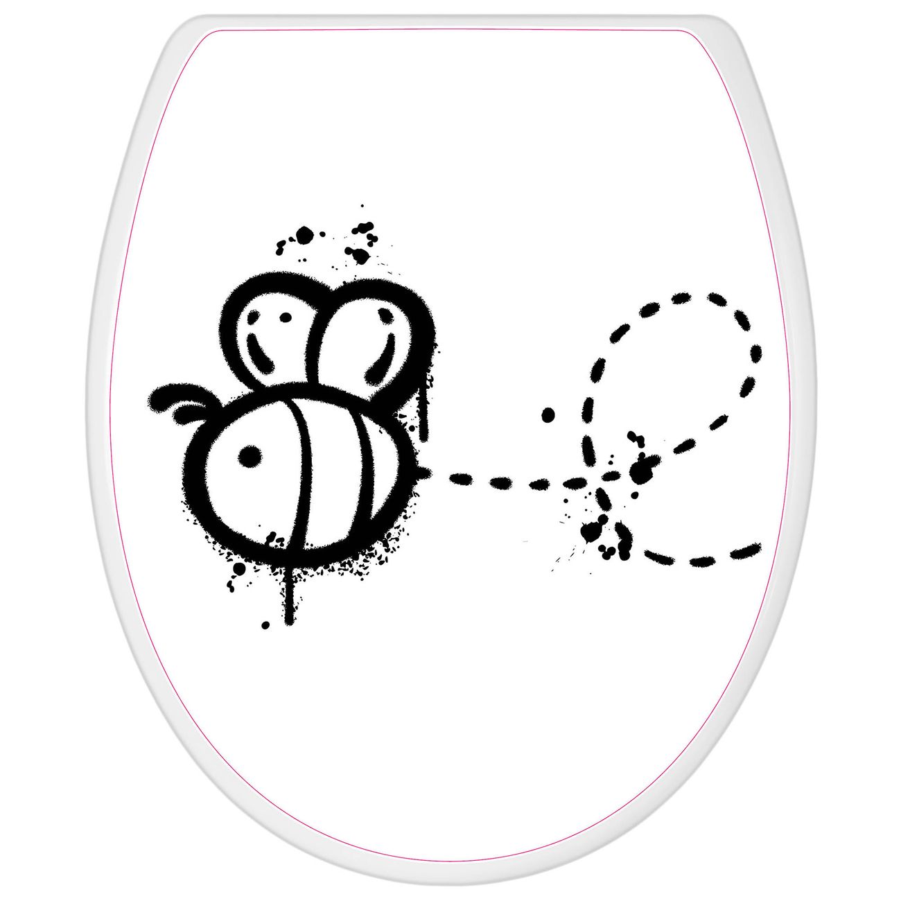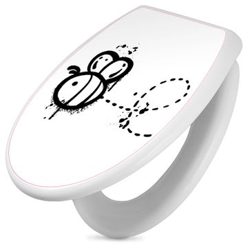 Toilettendeckel weiß mit Absenkautomatik Motiv Fliegende Biene Graffiti