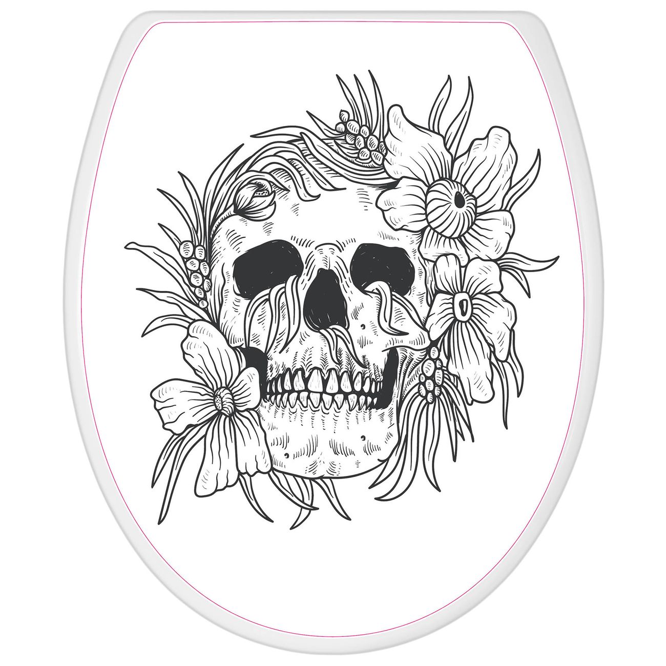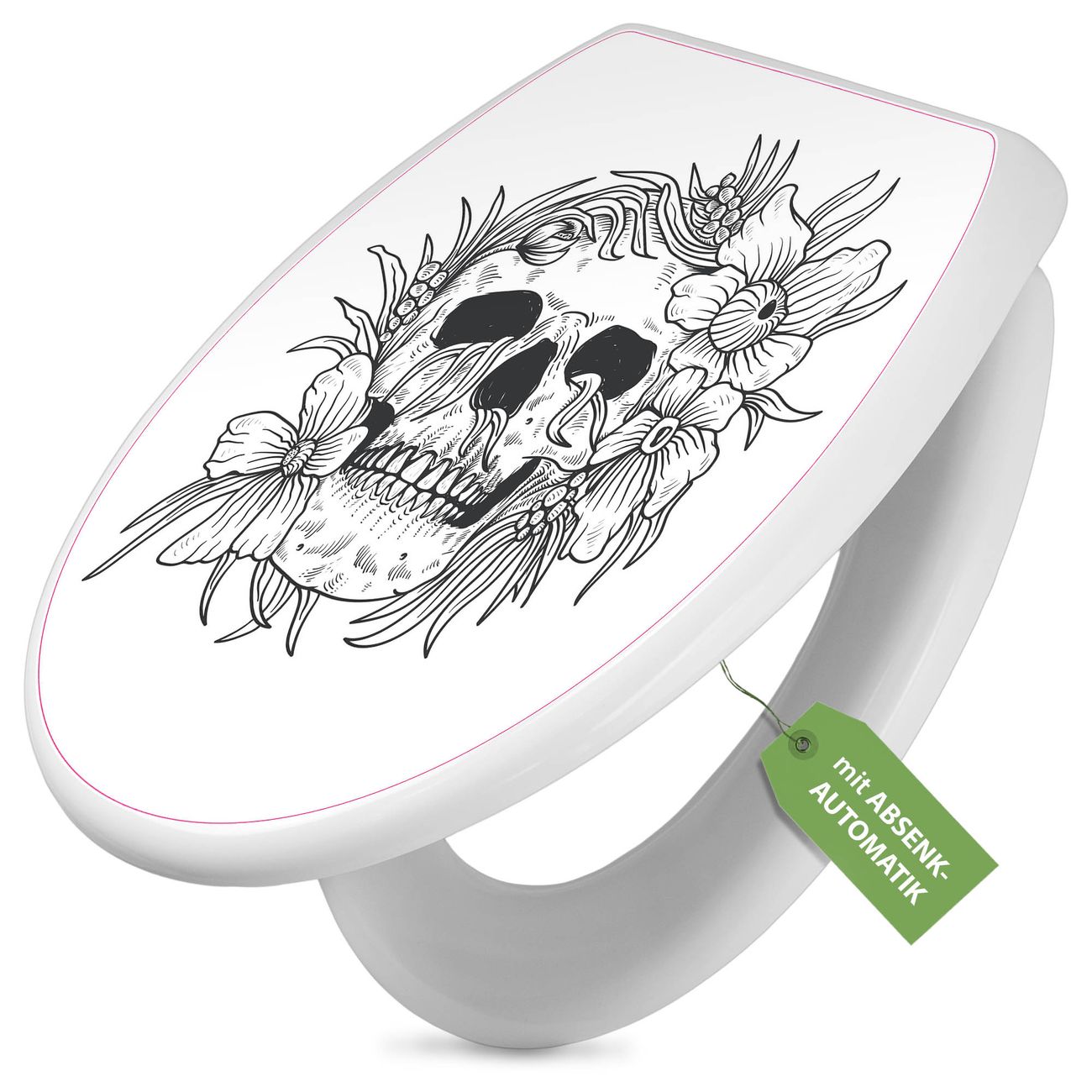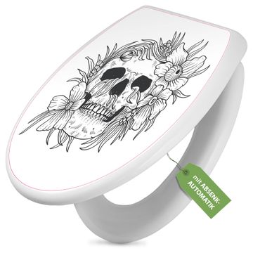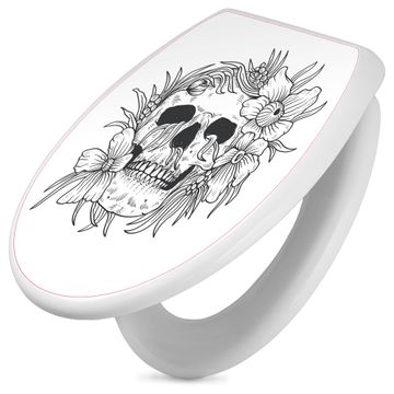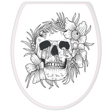Toilettendeckel weiß mit Absenkautomatik Motiv Floral Skull 2