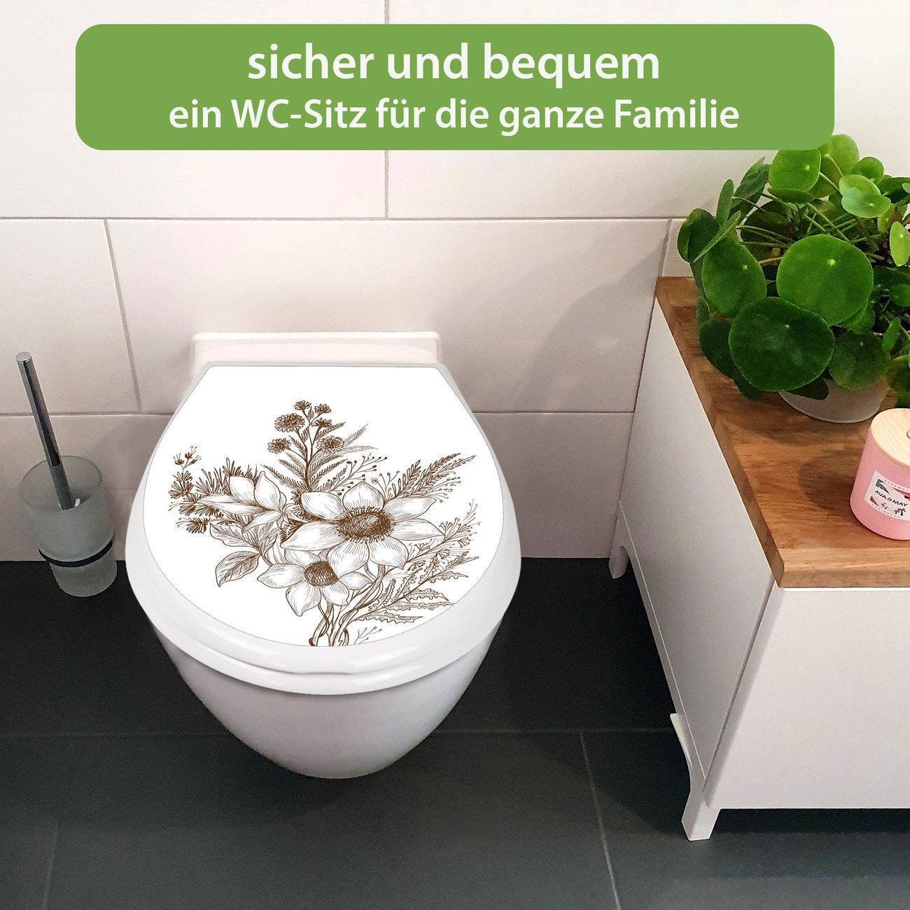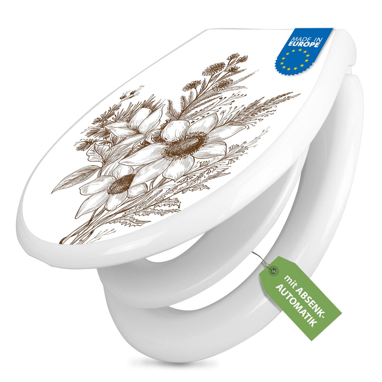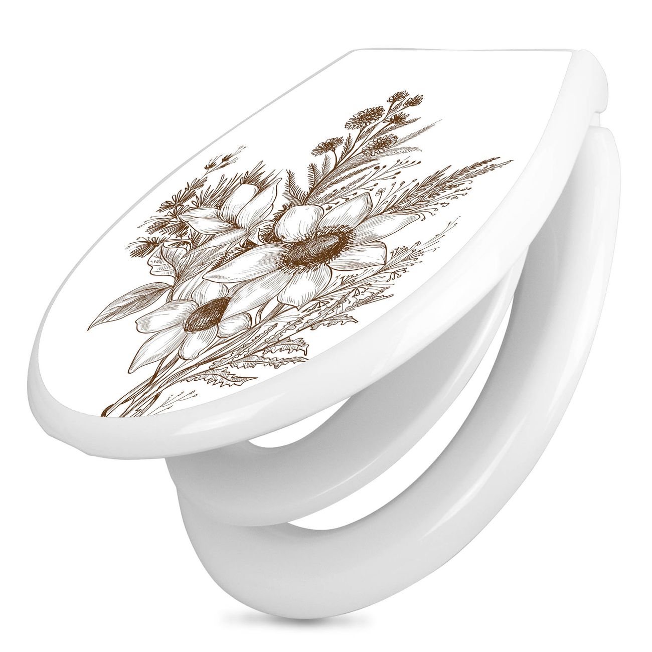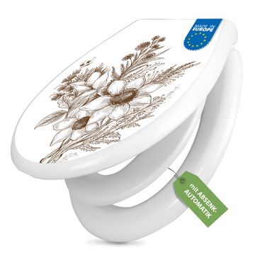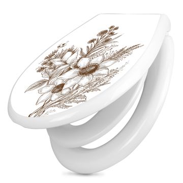 Toilettendeckel weiß mit Absenkautomatik Motiv Florale Zeichnung