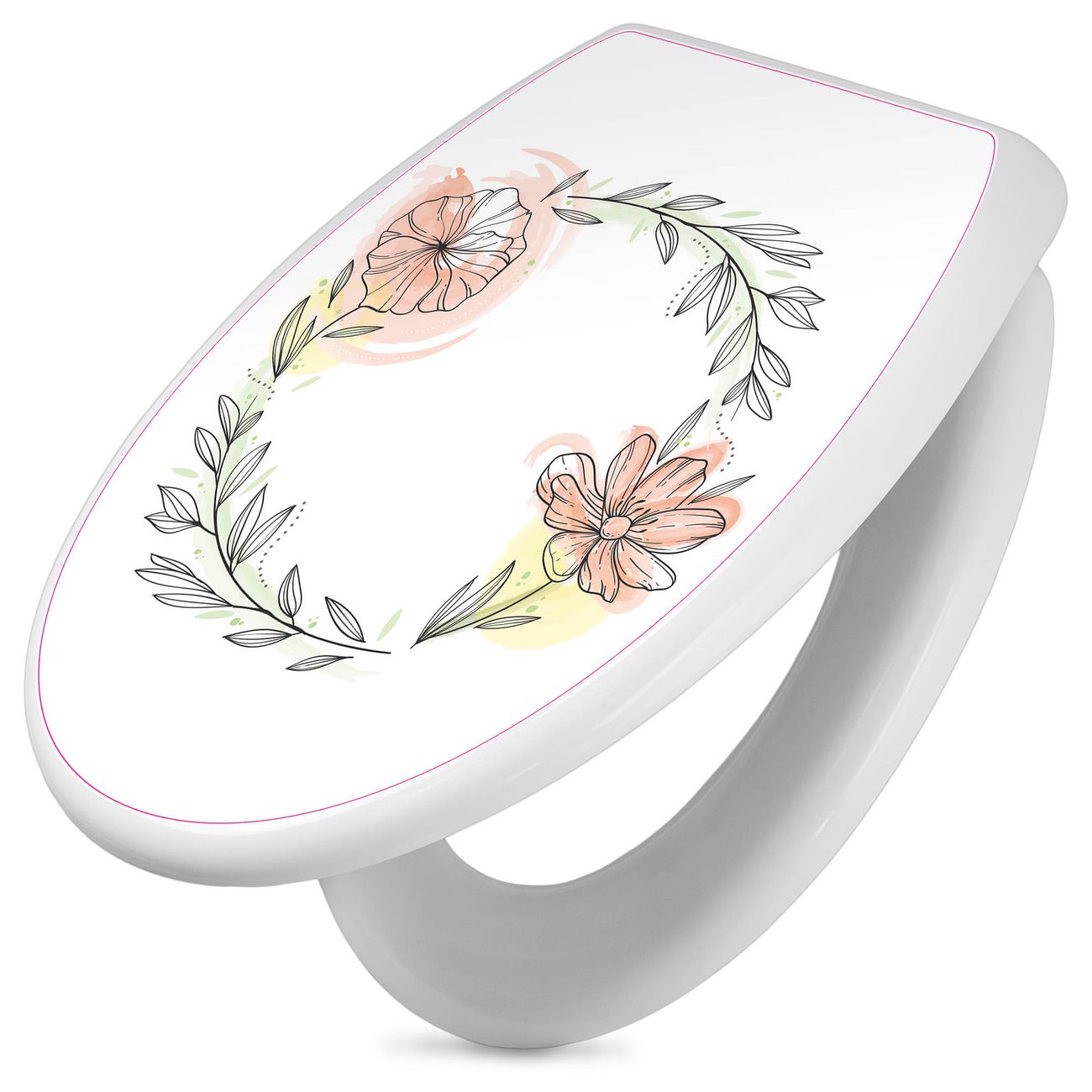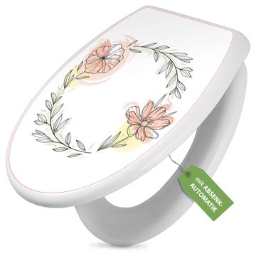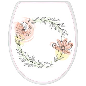 Toilettendeckel weiß mit Absenkautomatik Motiv Floraler Blütenkranz