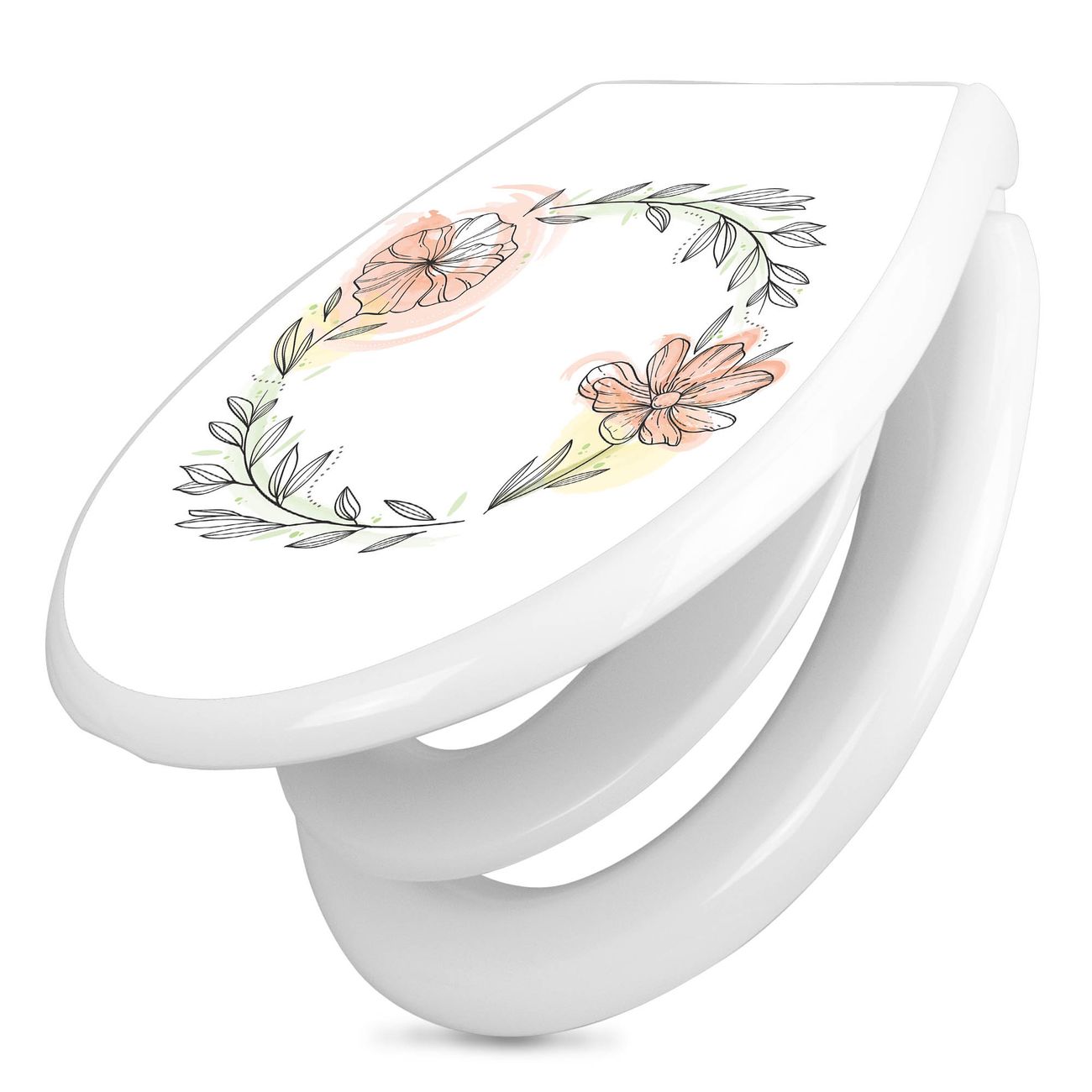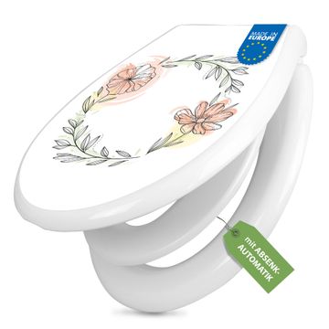 Toilettendeckel weiß mit Absenkautomatik Motiv Floraler Blütenkranz