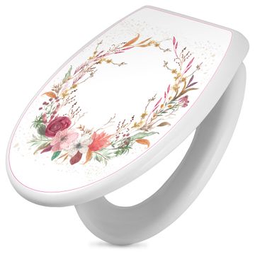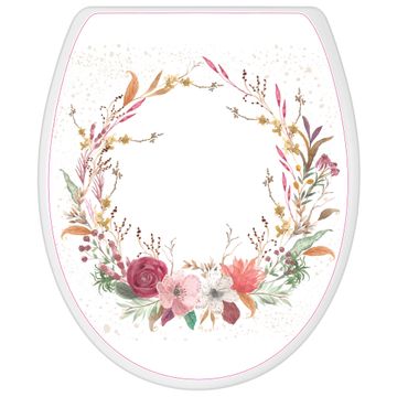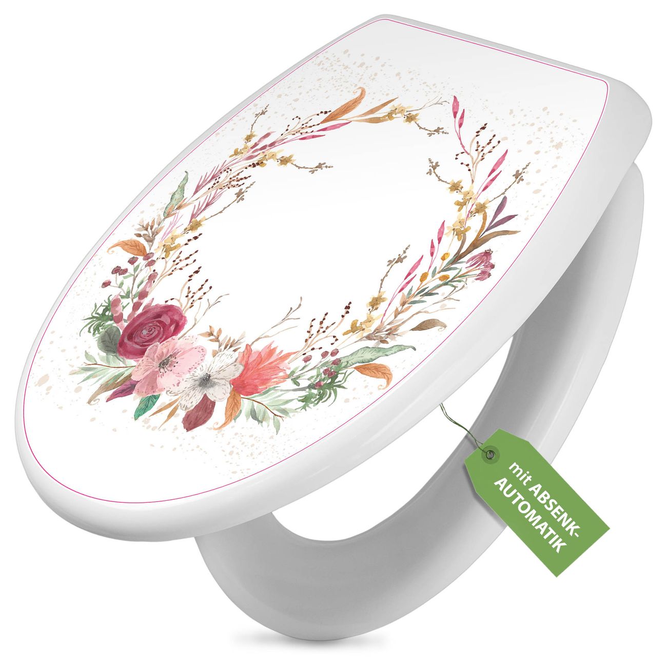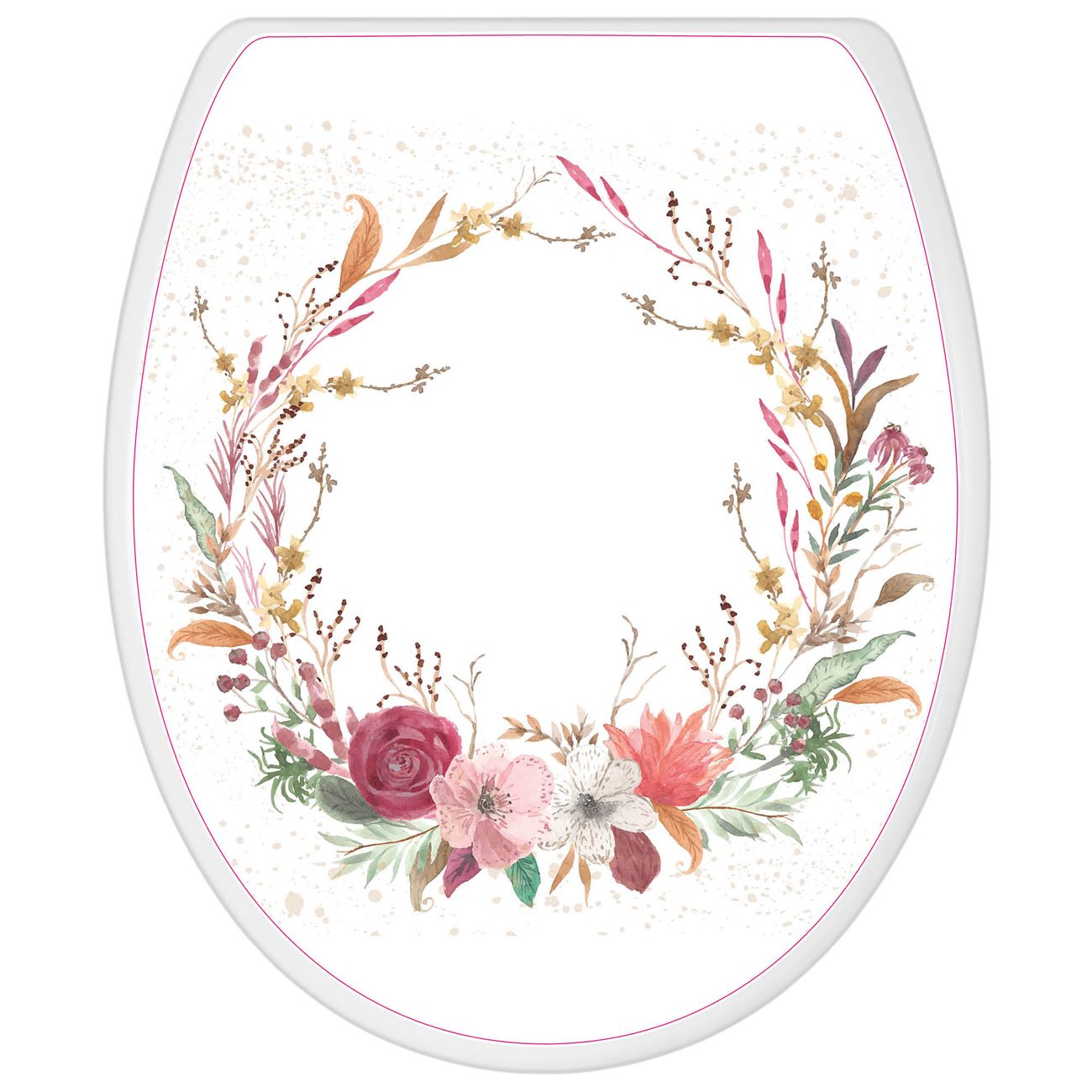 Toilettendeckel weiß mit Absenkautomatik Motiv Floraler Blumenkranz