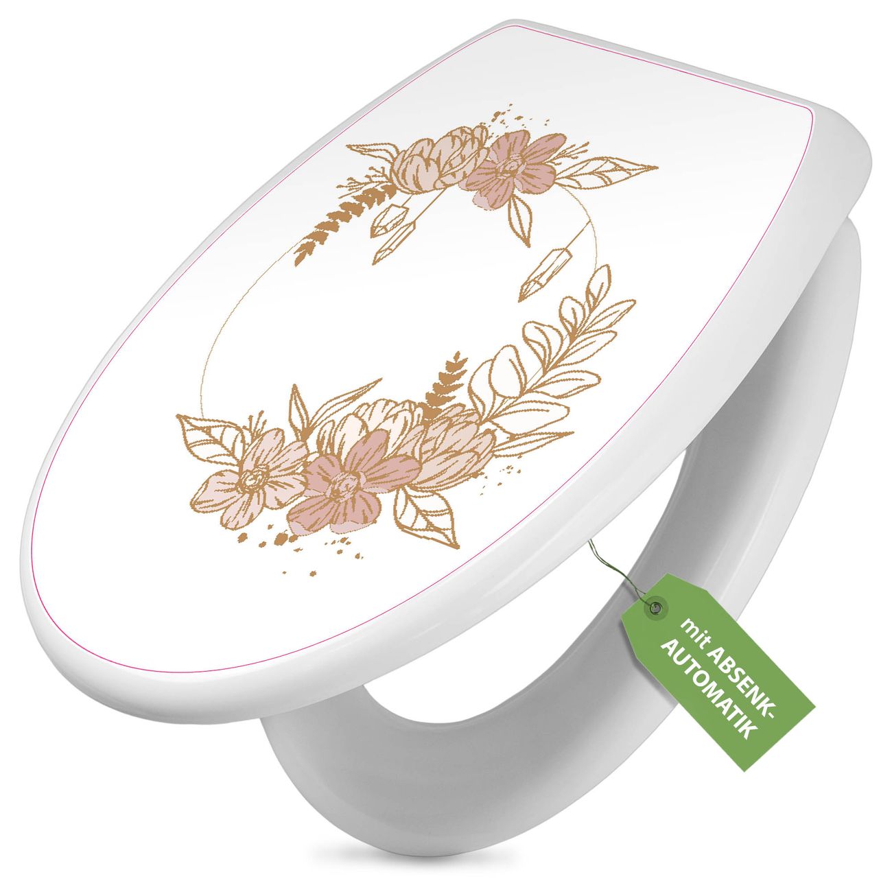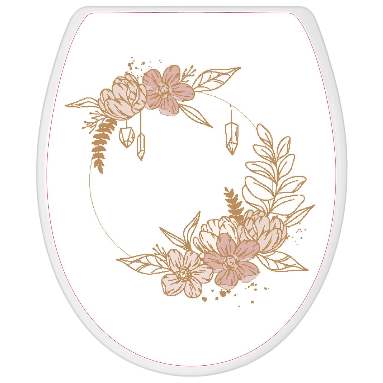 Toilettendeckel weiß mit Absenkautomatik Motiv Floraler Kranz