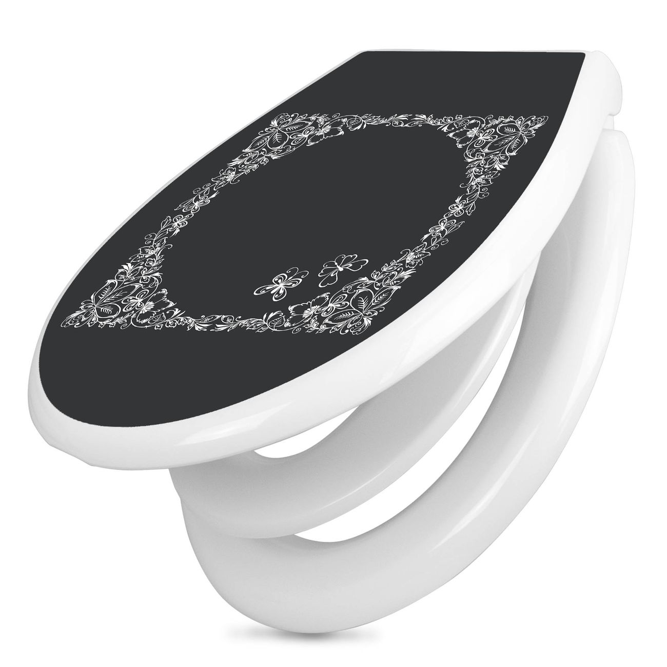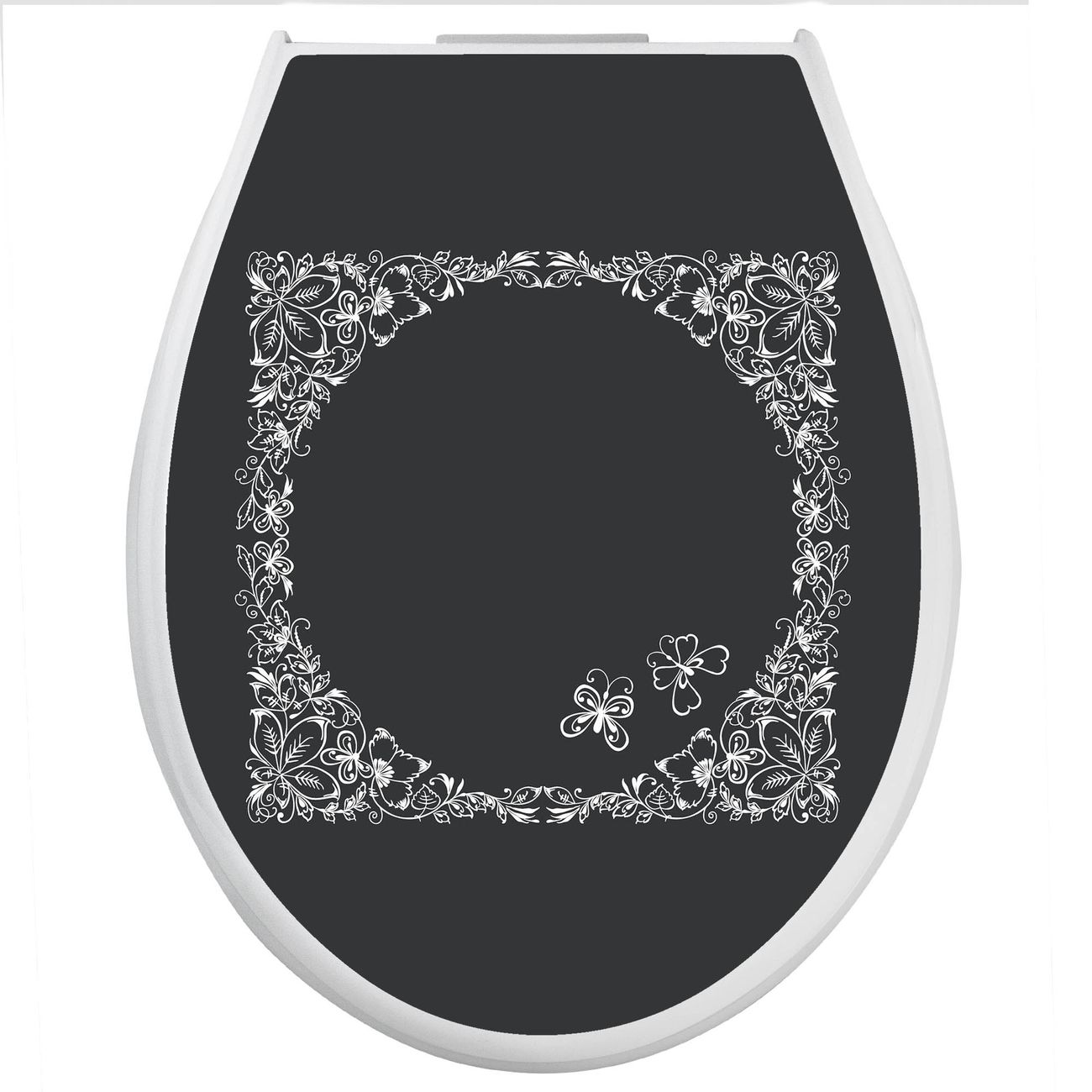 Toilettendeckel weiß mit Absenkautomatik Motiv Floraler Rahmen 3