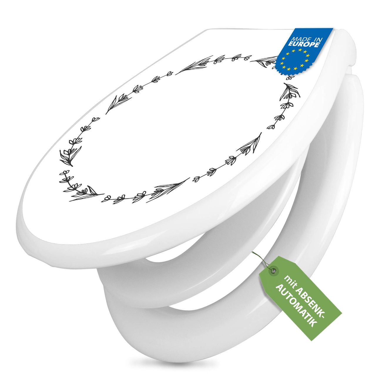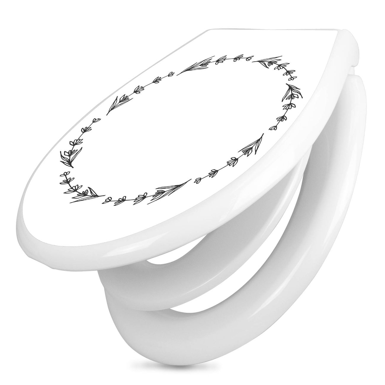 Toilettendeckel weiß mit Absenkautomatik Motiv Floraler Rahmen 4