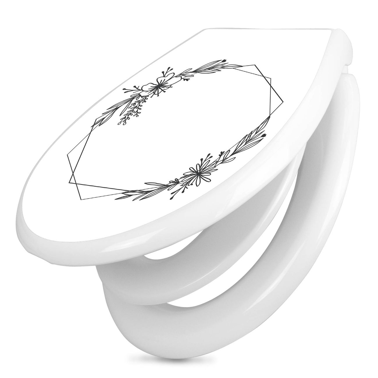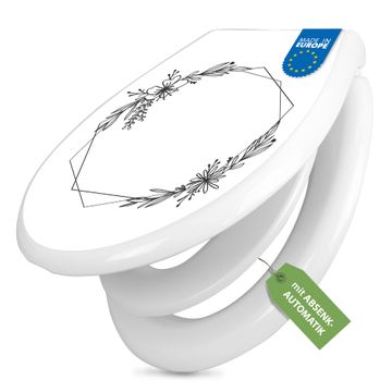 Toilettendeckel weiß mit Absenkautomatik Motiv Floraler Rahmen