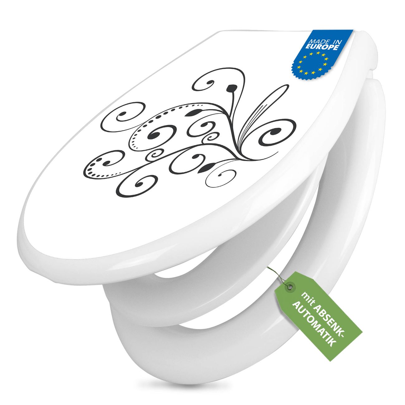 Toilettendeckel weiß mit Absenkautomatik Motiv Florales Ornament