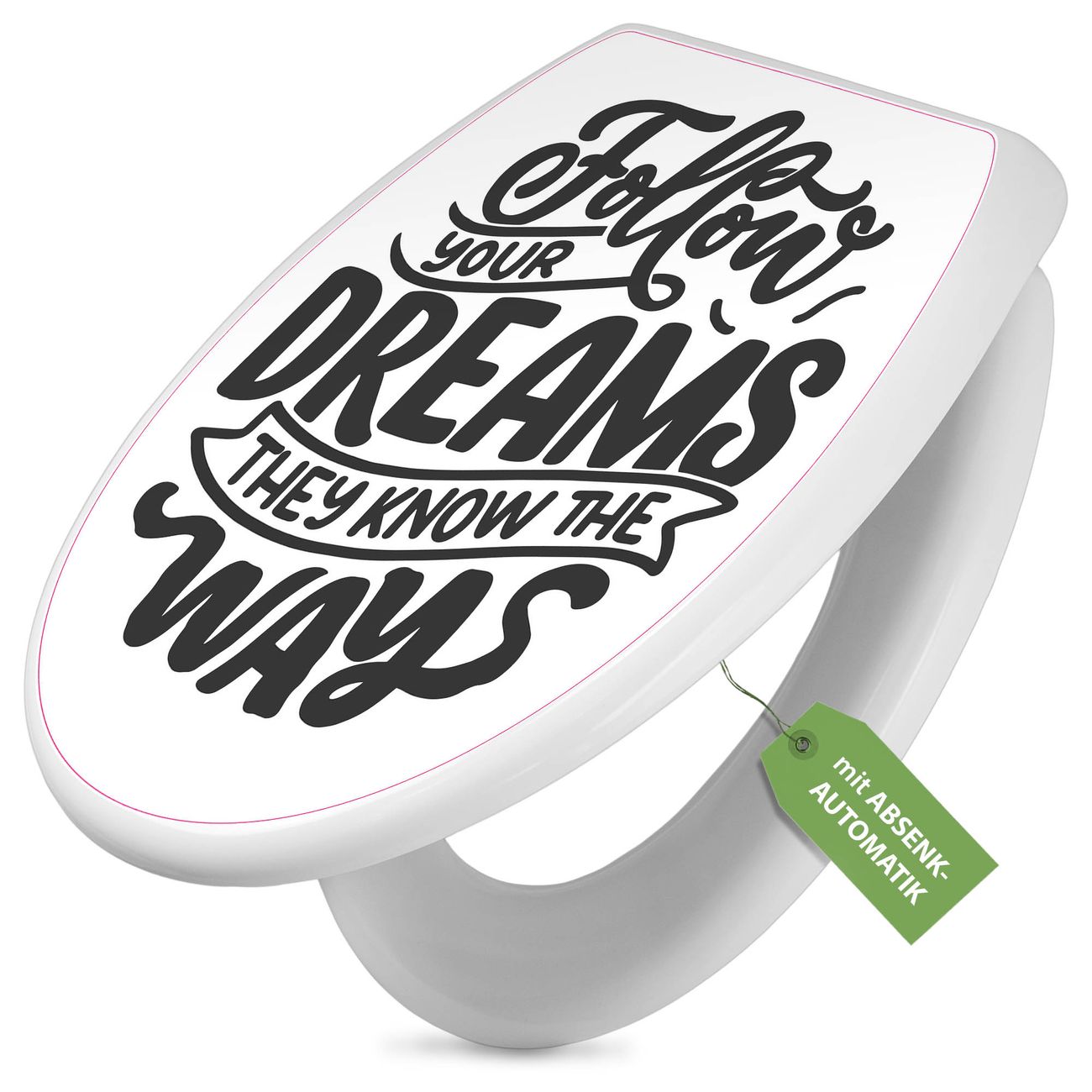 Toilettendeckel weiß mit Absenkautomatik Motiv Follow your Dreams 2