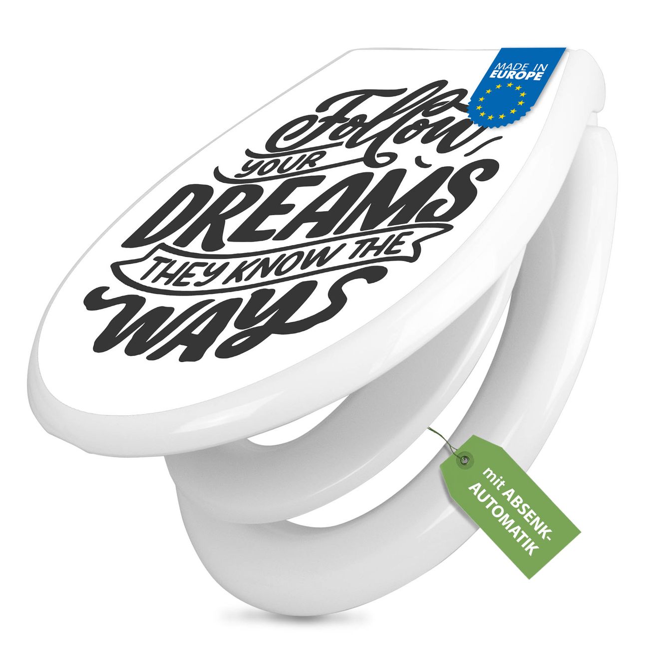 Toilettendeckel weiß mit Absenkautomatik Motiv Follow your Dreams 2