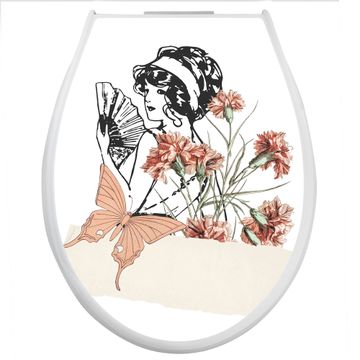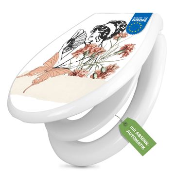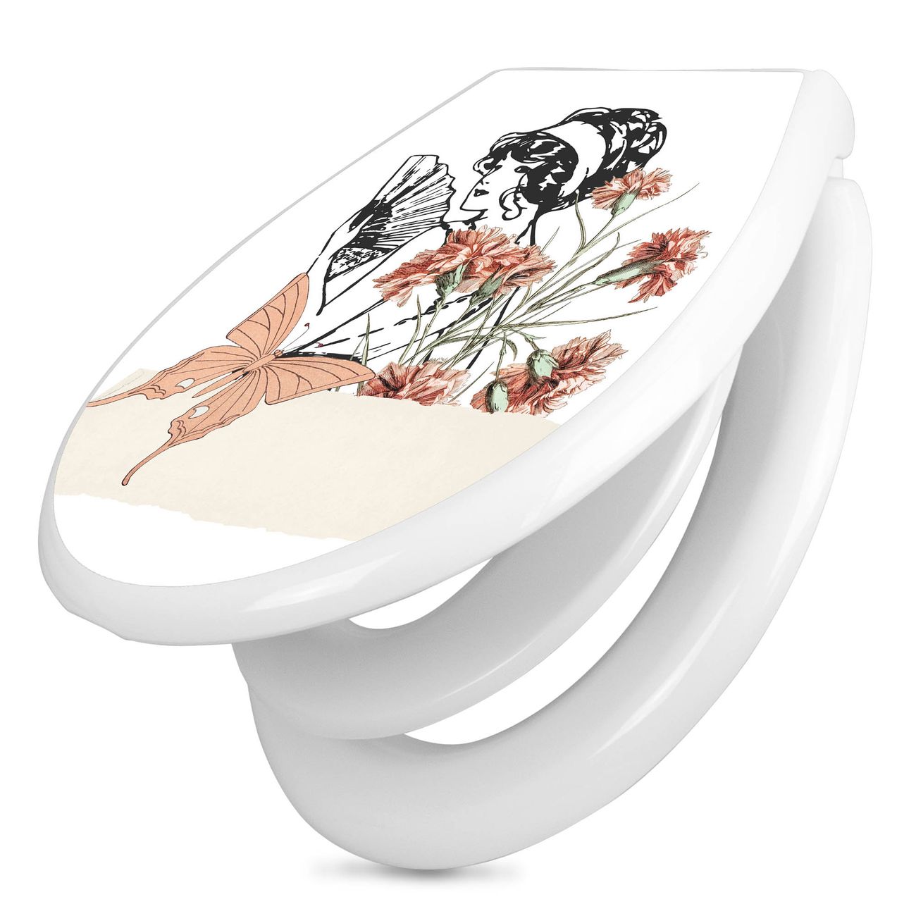 Toilettendeckel weiß mit Absenkautomatik Motiv Frau und Blühten Vintage 2