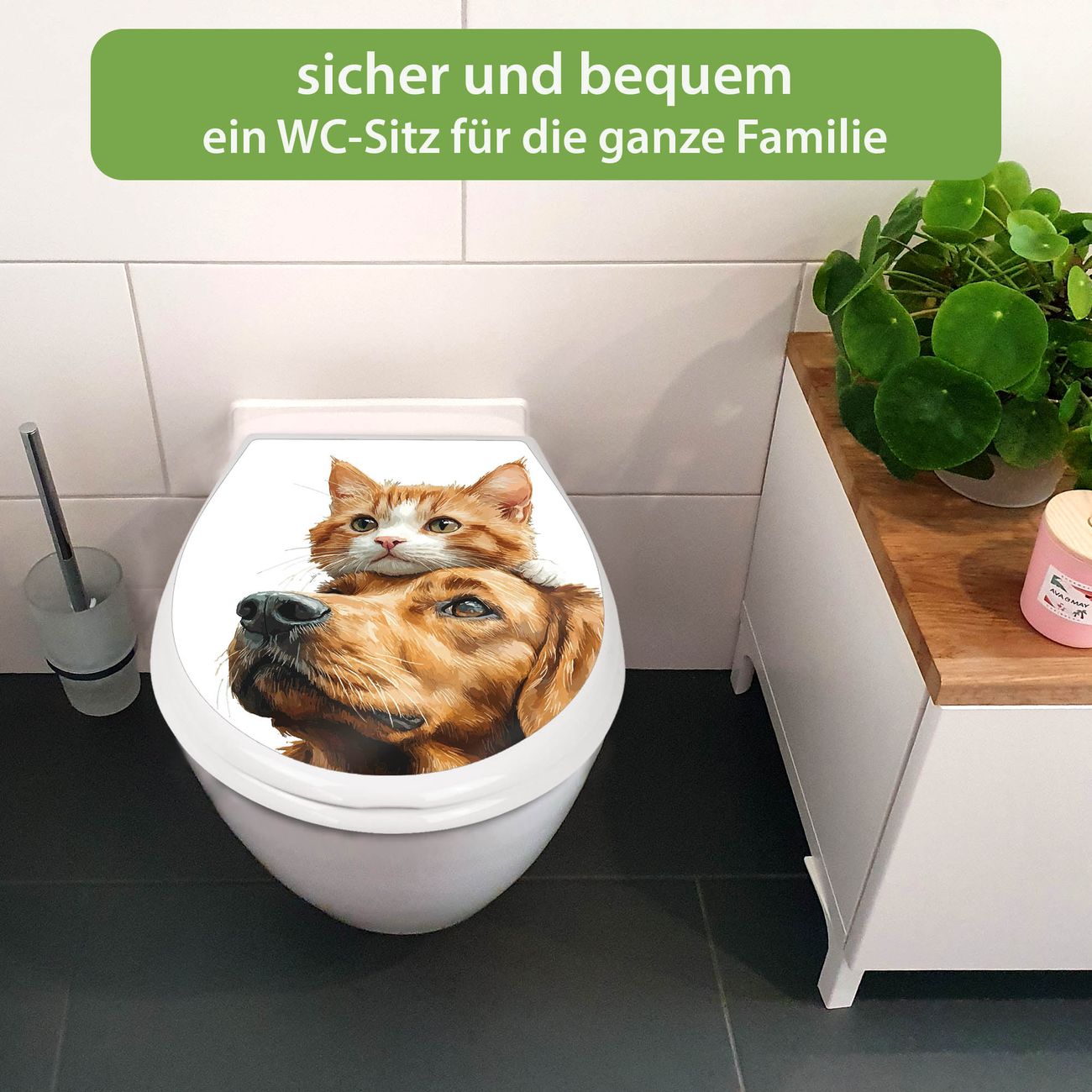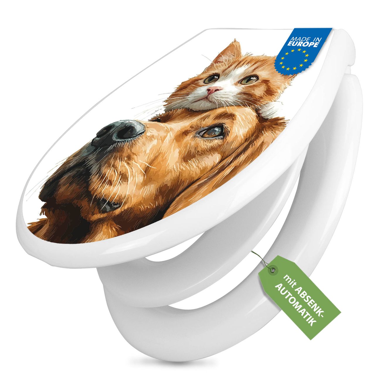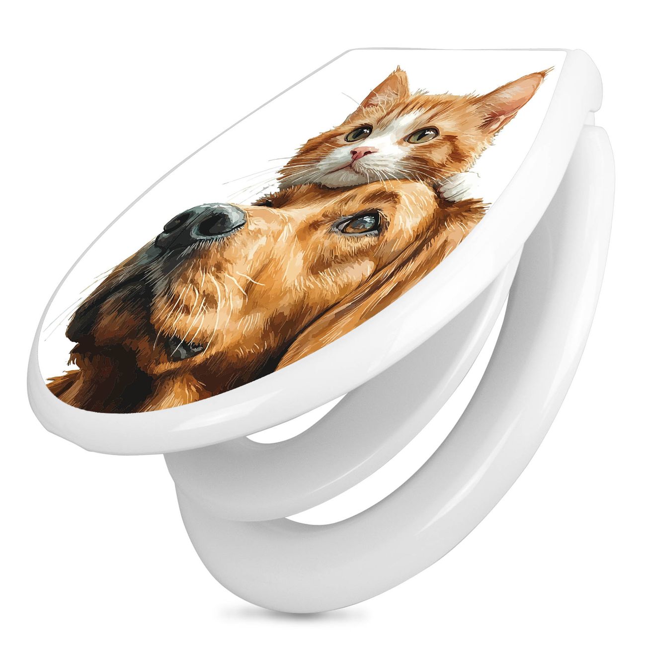 Toilettendeckel weiß mit Absenkautomatik Motiv Freundschaft in Fell