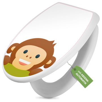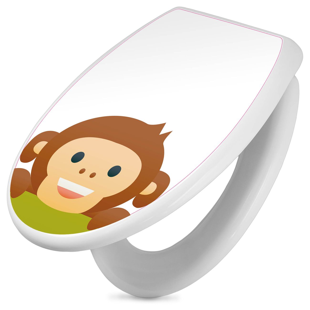 Toilettendeckel weiß mit Absenkautomatik Motiv Fröhlicher Affe