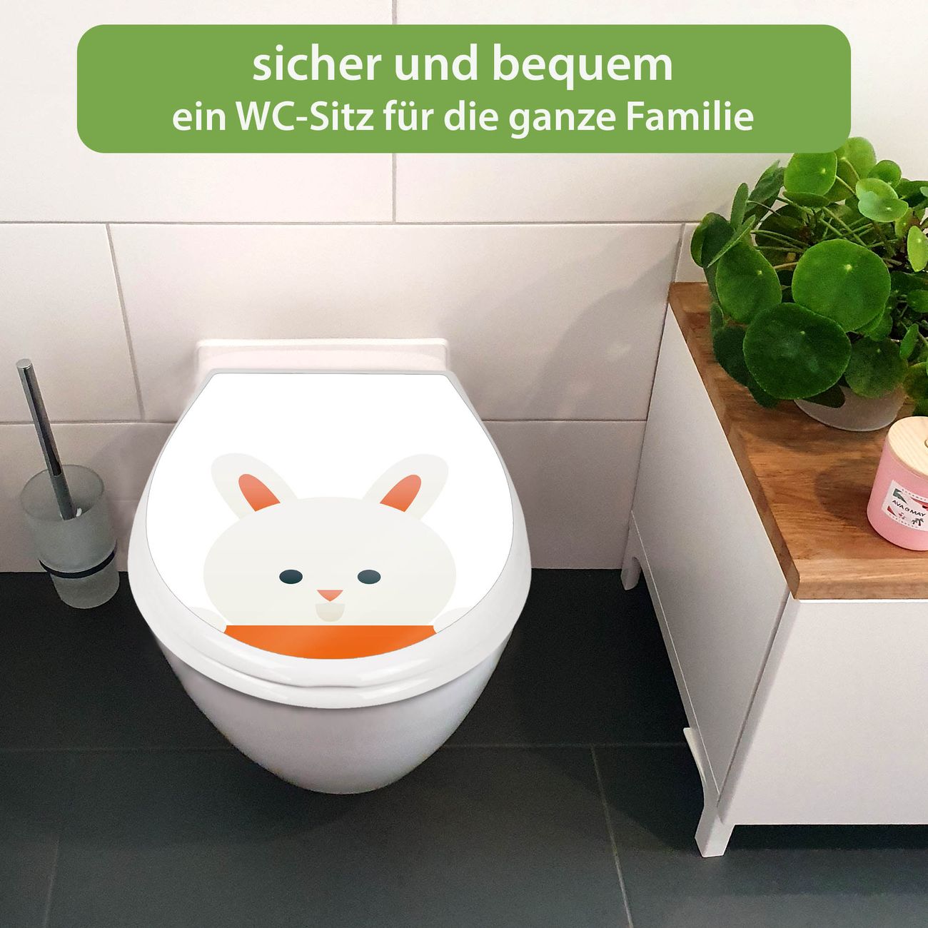 Toilettendeckel weiß mit Absenkautomatik Motiv Fröhlicher Hase