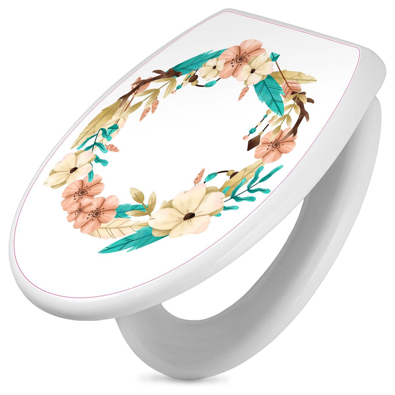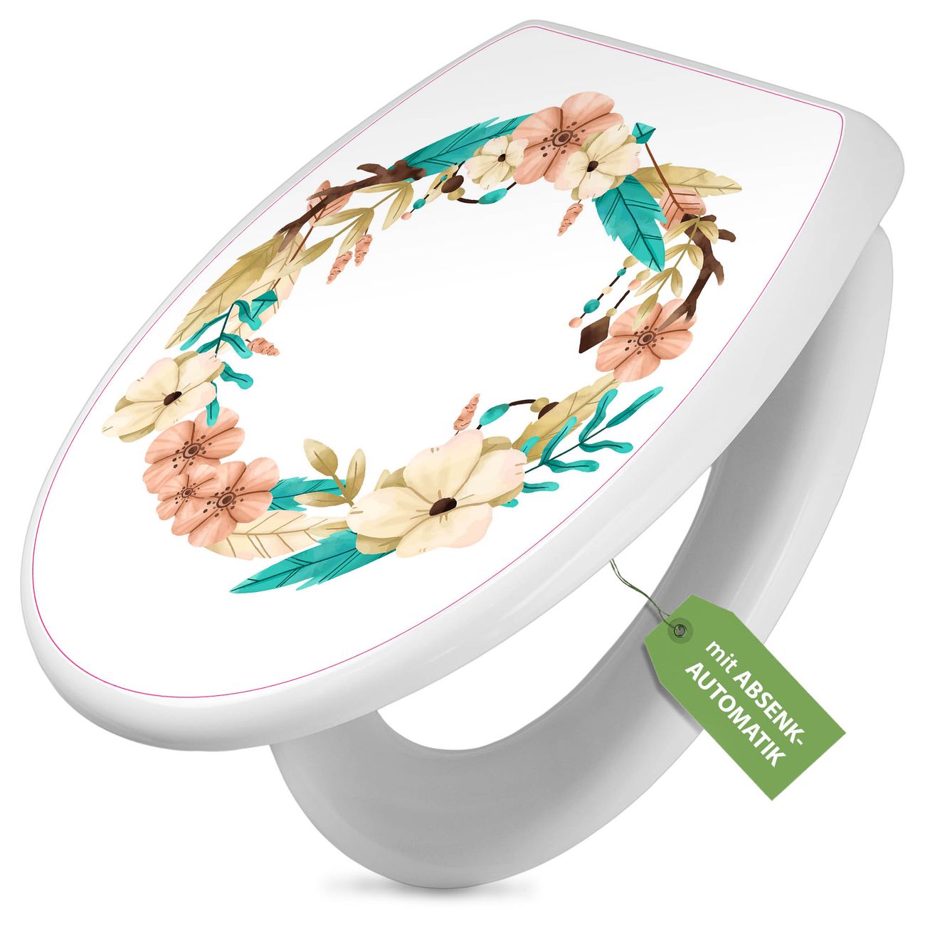 Toilettendeckel weiß mit Absenkautomatik Motiv Frühlingsblütenkranz