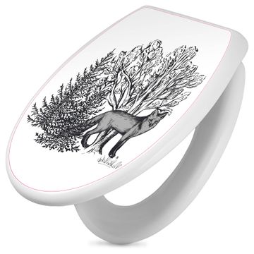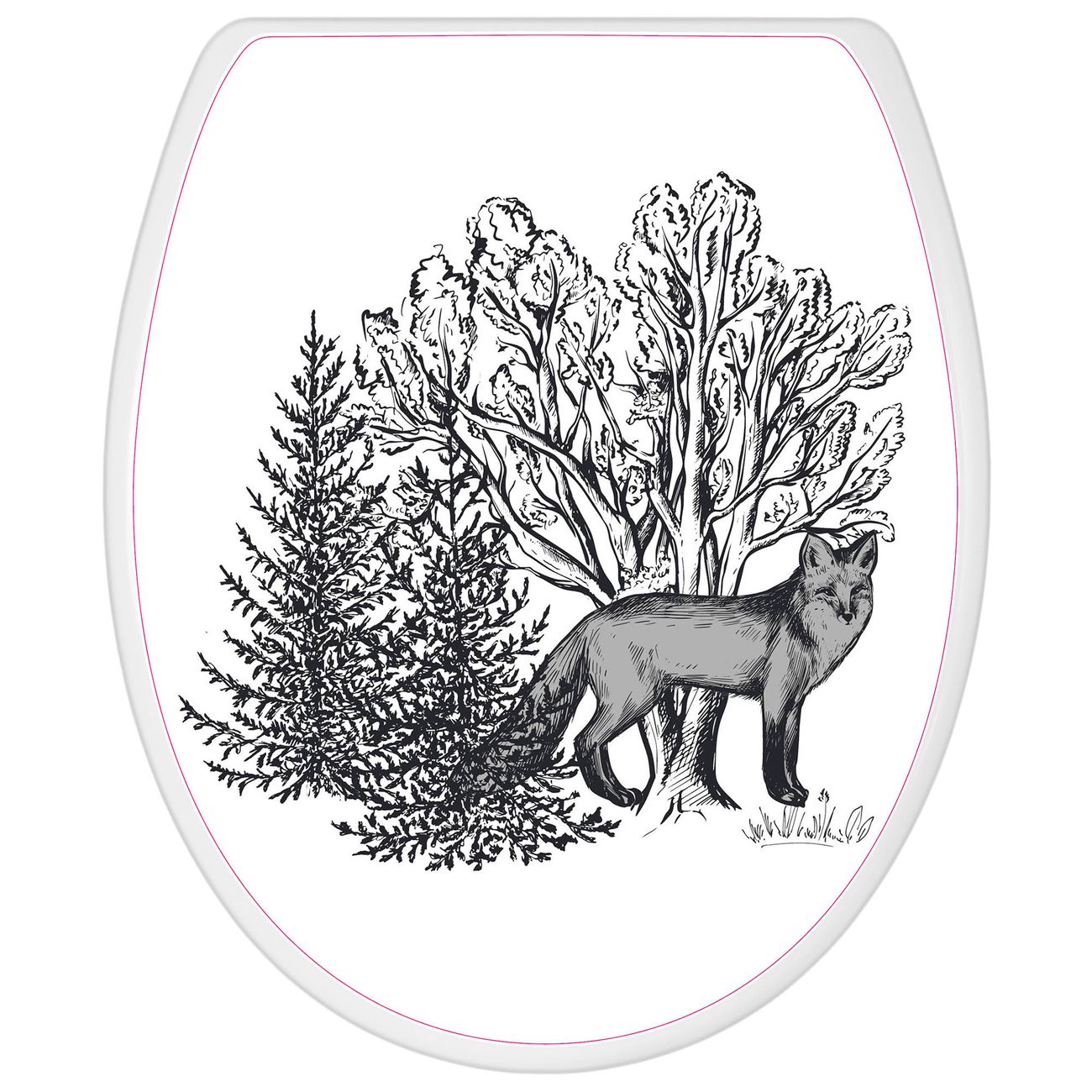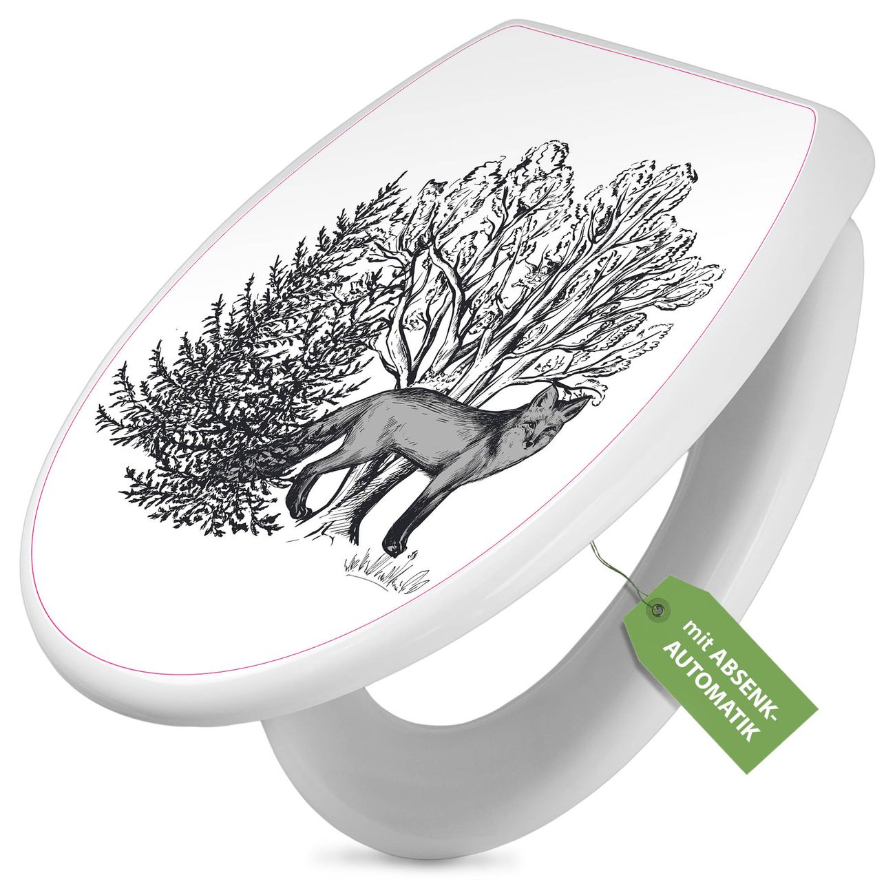 Toilettendeckel weiß mit Absenkautomatik Motiv Fuchs in Schwarz-Weiß