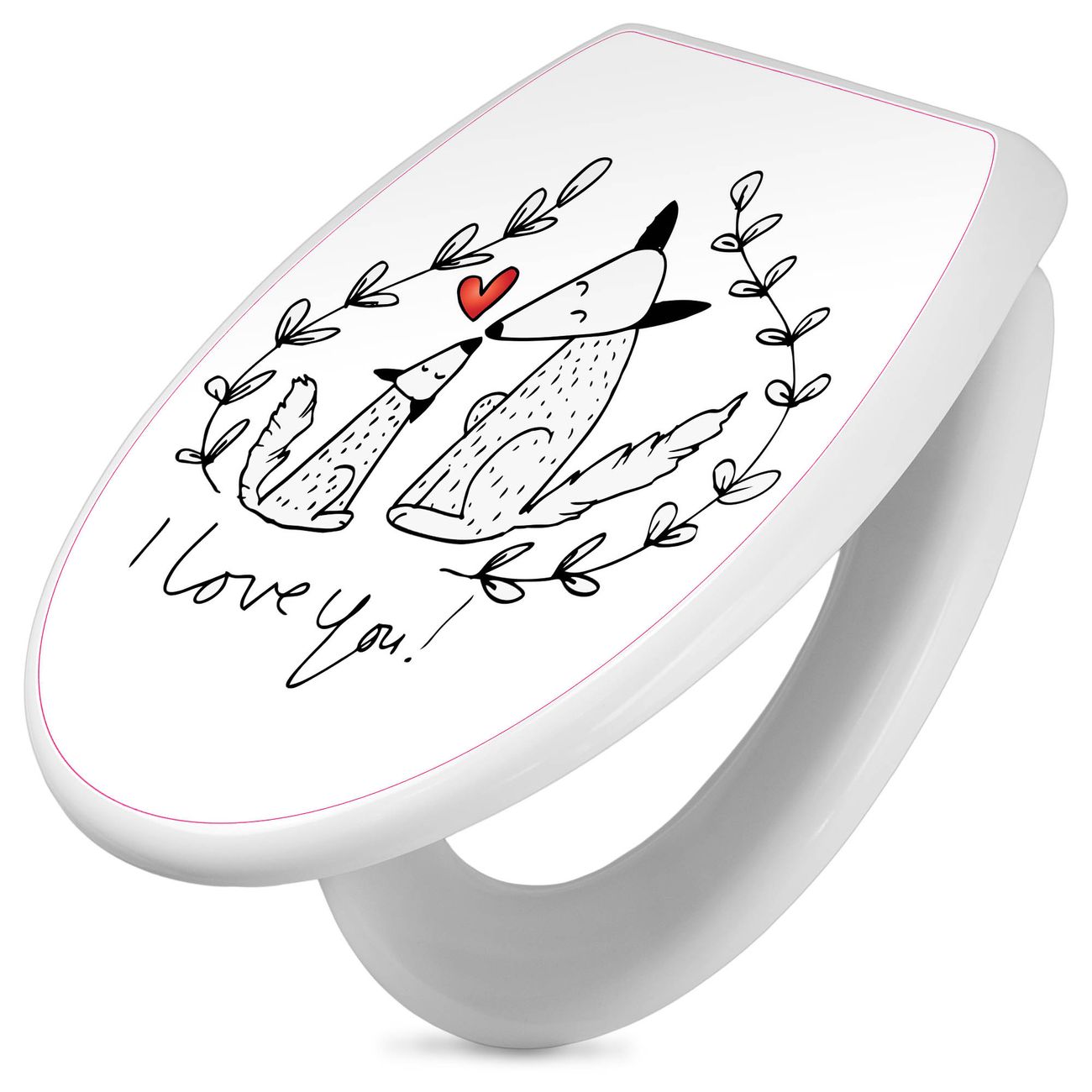 Toilettendeckel weiß mit Absenkautomatik Motiv Fuchsliebe