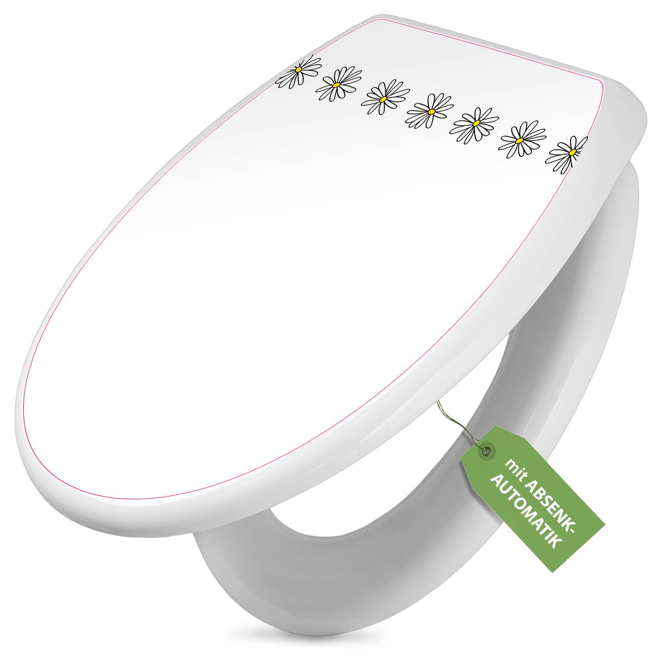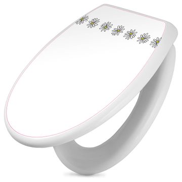 Toilettendeckel weiß mit Absenkautomatik Motiv Gänseblümchen-Rahmen