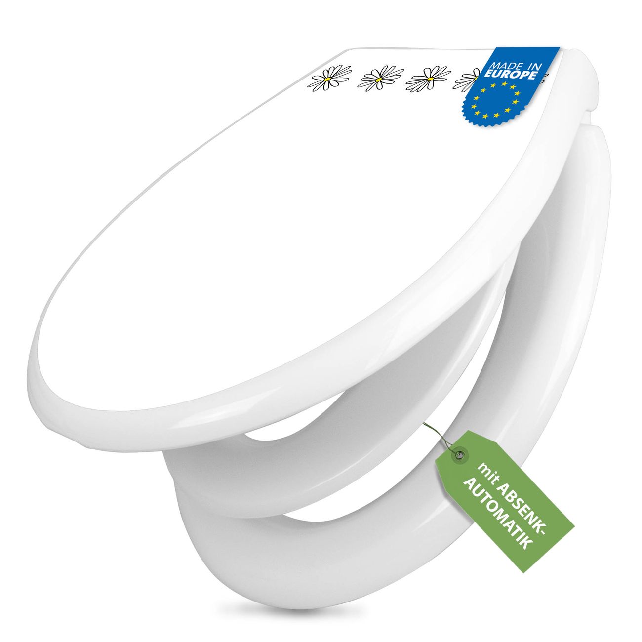 Toilettendeckel weiß mit Absenkautomatik Motiv Gänseblümchen-Rahmen