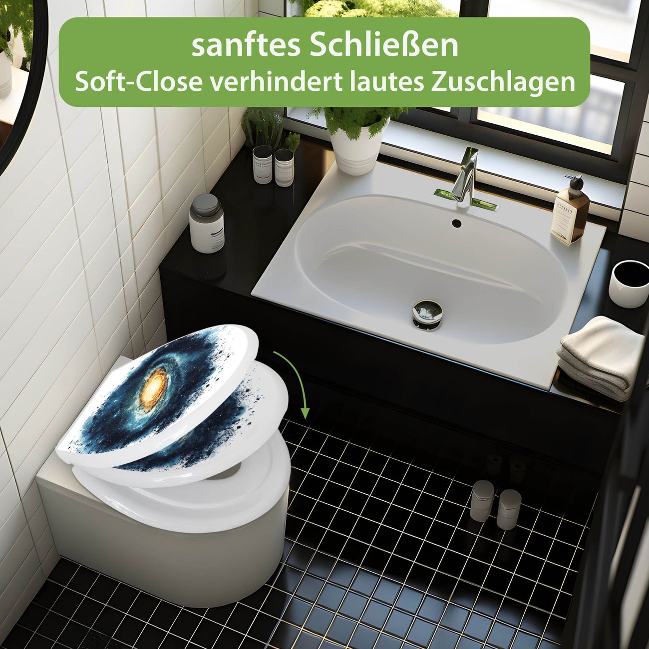 Toilettendeckel weiß mit Absenkautomatik Motiv Galaktische Explosion