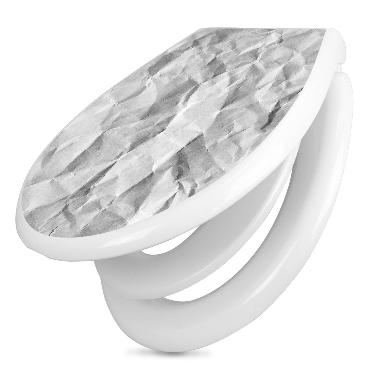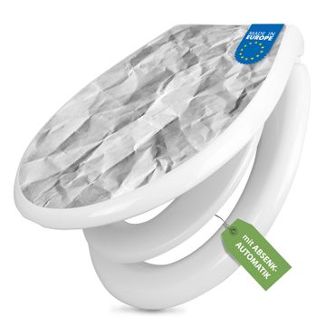 Toilettendeckel weiß mit Absenkautomatik Motiv Geknittertes Papier Grau