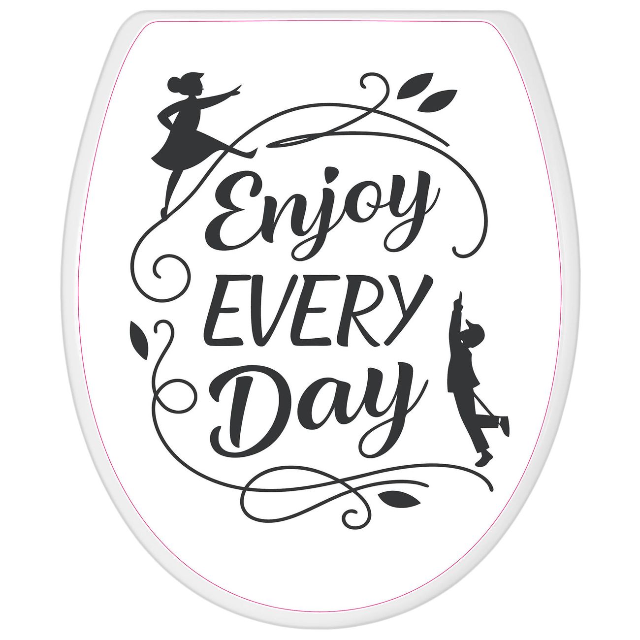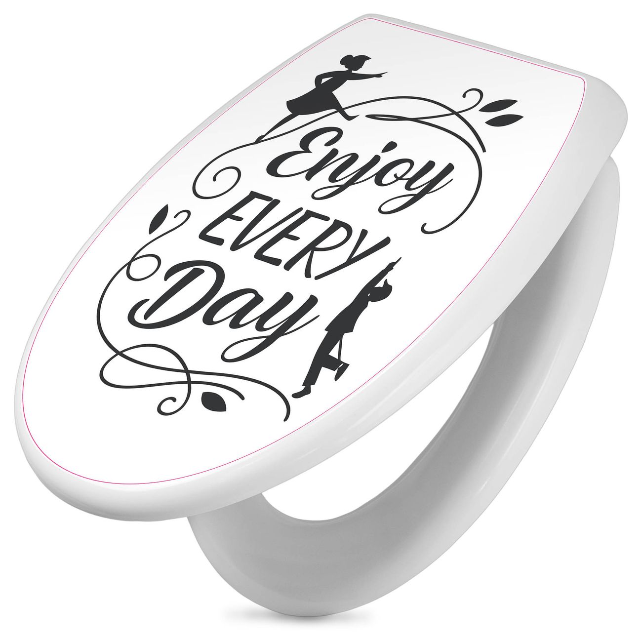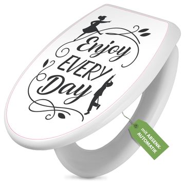Toilettendeckel weiß mit Absenkautomatik Motiv Genieße Jeden Tag