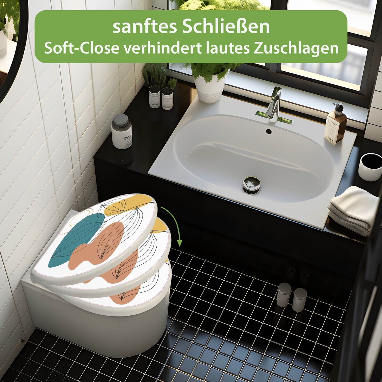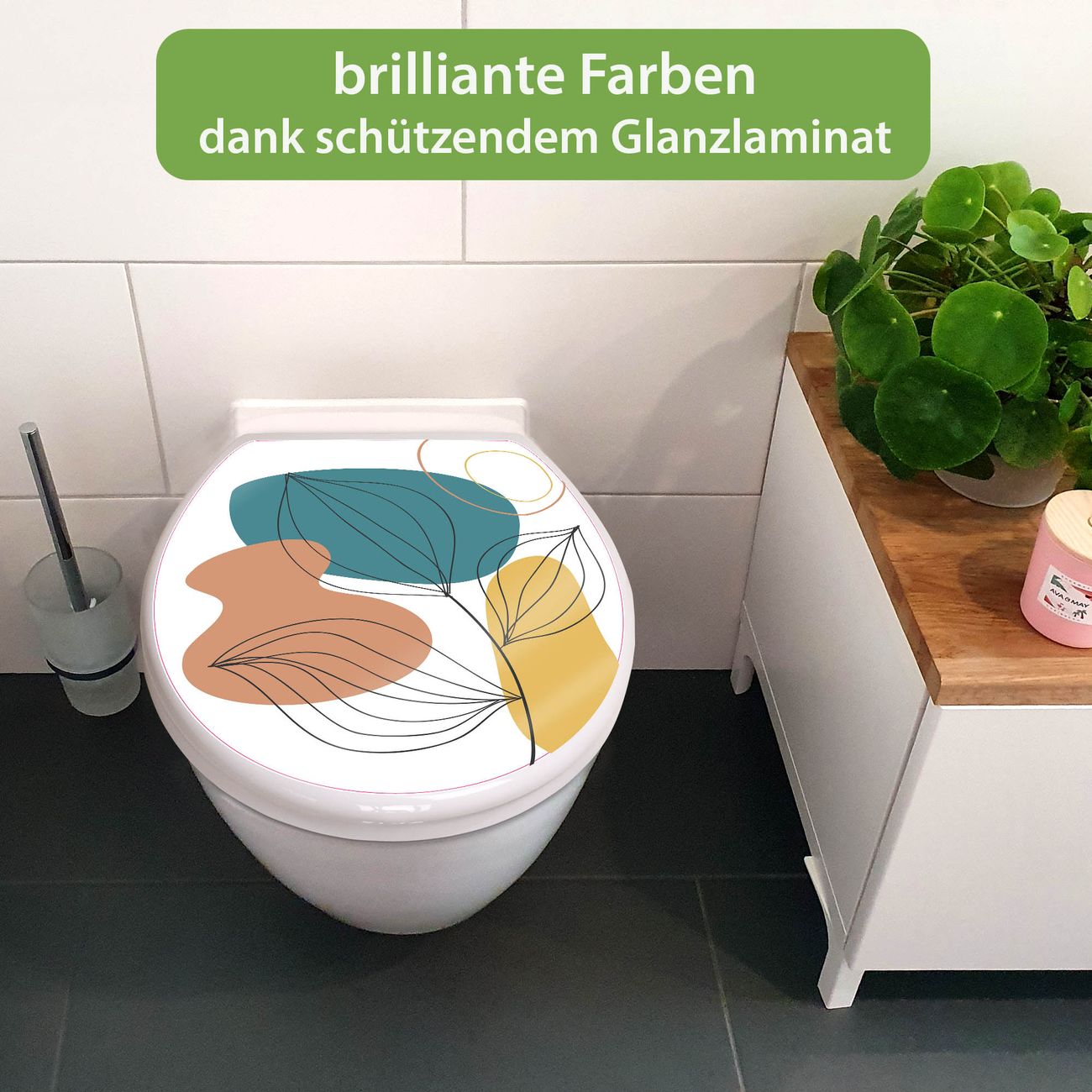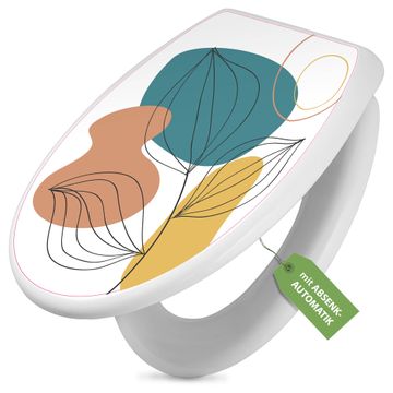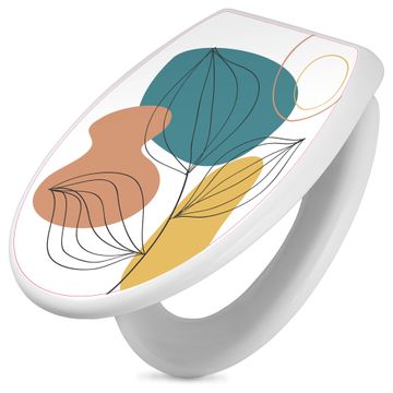 Toilettendeckel weiß mit Absenkautomatik Motiv Geometrische Blätter Lineart