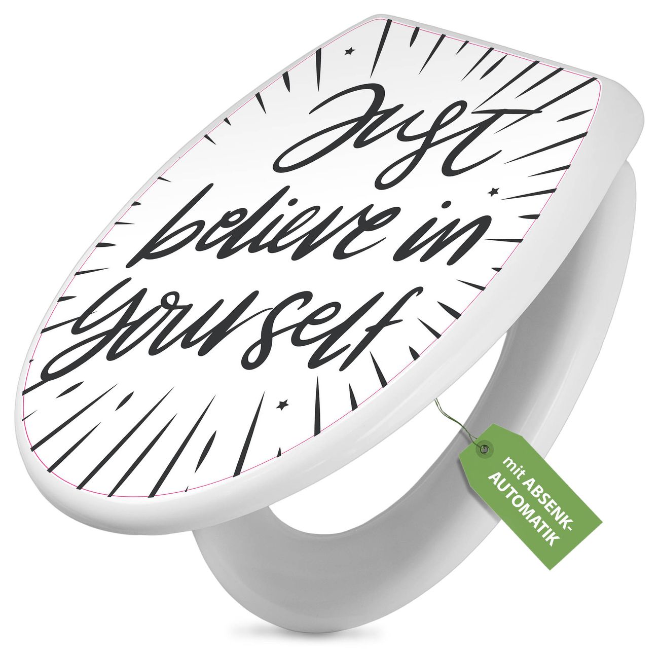 Toilettendeckel weiß mit Absenkautomatik Motiv Glaube an dich