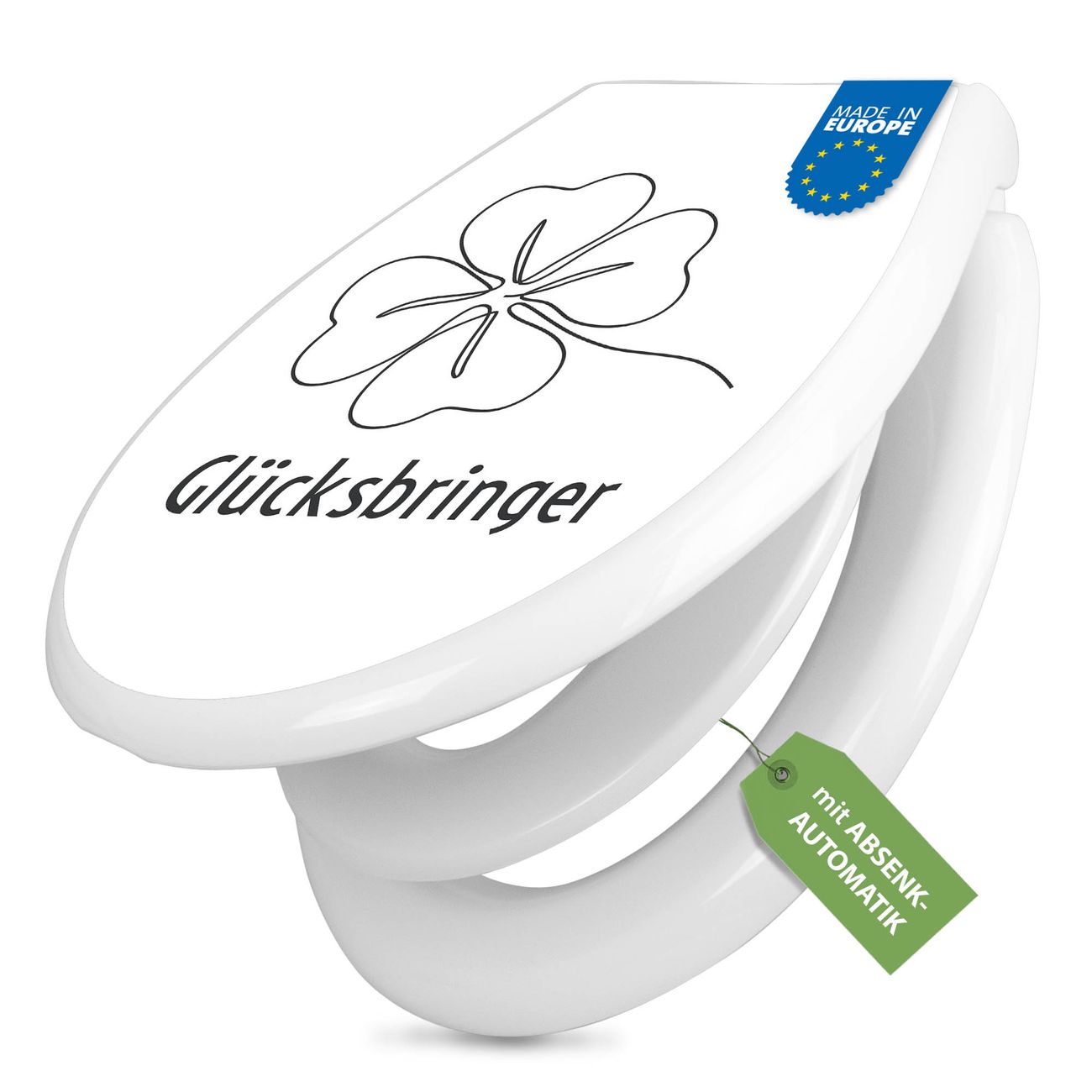 Toilettendeckel weiß mit Absenkautomatik Motiv Glücksbringer Kleeblatt 2