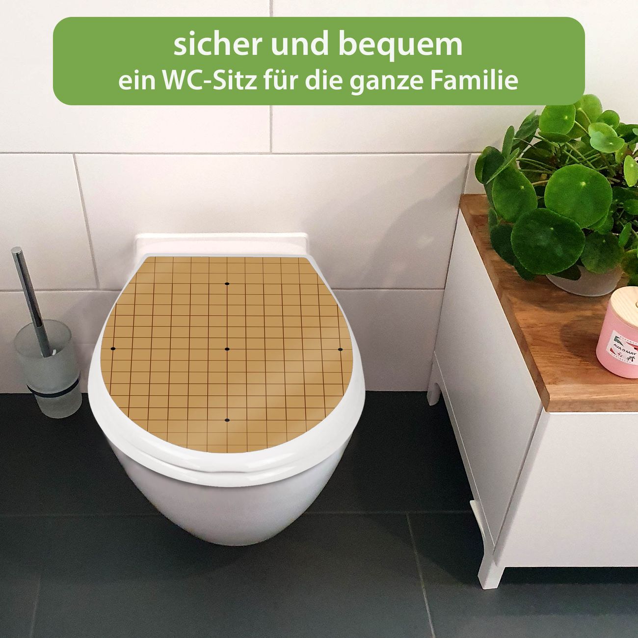 FUNKTION:Mit dem banjado Familien WC Sitz mit Absenkautomatik und dem Motiv Motiv Go Brett verbinden Sie Design mit Funktionalität. Sie erhalten den Toilettendeckel in bewährt guter Qualität mit Montagematerial passend auf alle Euro-WC-Becken. Die Gesamtgröße beträgt 37,1cm x 44,9cm x 5cm, die Grundfarbe ist weiß.</p> DESIGN:Der Klodeckel in weiß mit Motiv Motiv Go Brett hat eine ansprechende Optik, eine besondere Form und ist sehr stabil. Das Motiv besteht aus einer farbbrillianten Motivfolie, die durch ein Schutzlaminat zusätzlich vor Kratzern schützt. Der integrierte Kindersitz fügt sich harmonisch ein. DETAILS:Der Toilettensitz mit Soft Close besteht aus hochwertigem Polypropylen, ist geruchlos, ungiftig und kann mit handelsüblicher Seife gereinigt werden. Die Montage kann von von oben oder von unten erfolgen und ist kinderleicht. NUTZEN:Mit Hilfe der detaillierten Aufbauanleitung ermöglichen wir eine schnelle und unkomplizierte Montage. Die banjado Klobrille ist universell geeignet für alle Euro-WC-Schüsseln. Der Kindersitz kann unkompliziert entfernt werden. BANJADO:Ihr WC-Deckel wird in Sachsen in einer kleinen Manufaktur von Hand veredelt. Die Motivfolie ist lösungsmittelfrei und schutzlaminiert für einen langen Halt. Wir wünschen viel Freude bei der Auswahl eines schönen Motivs.