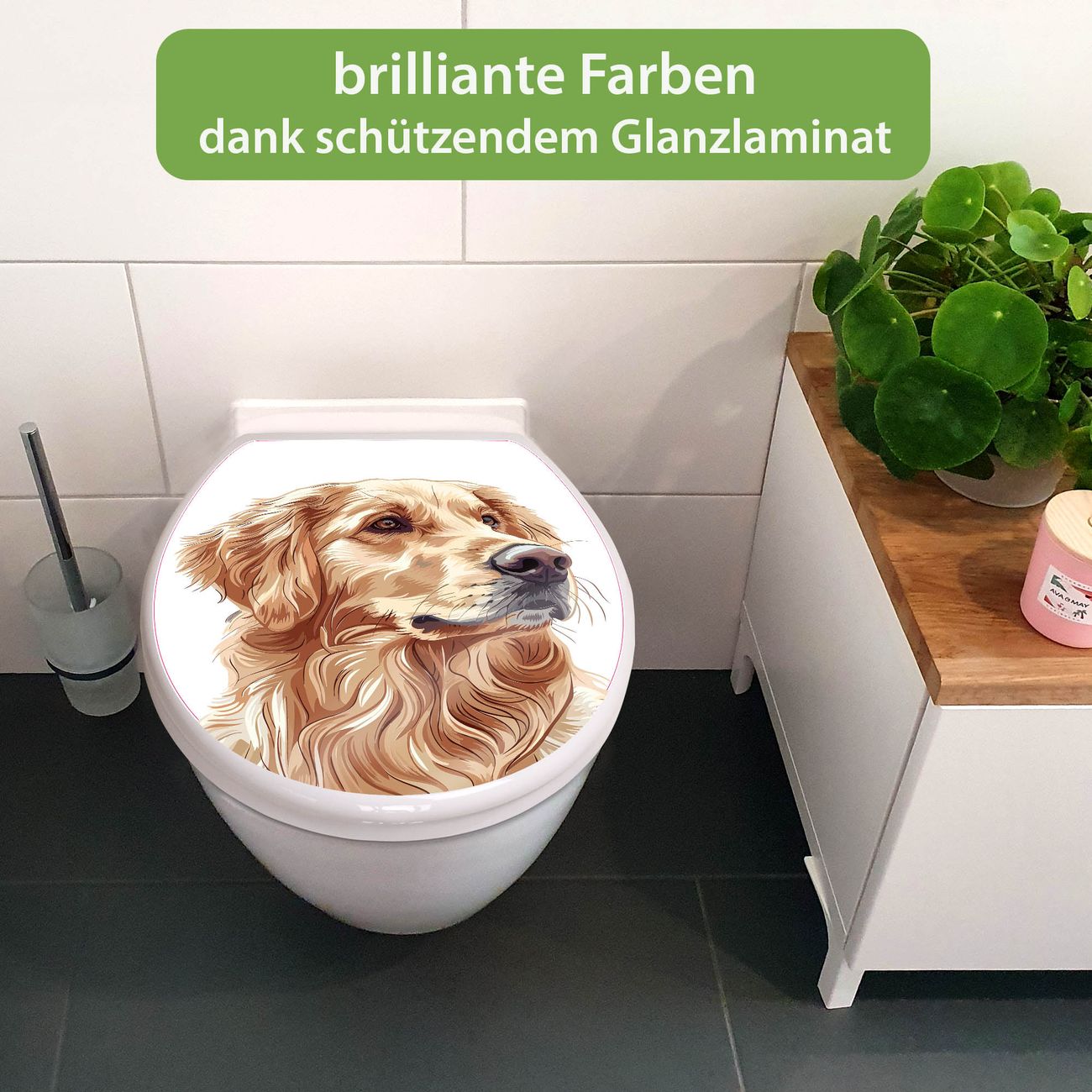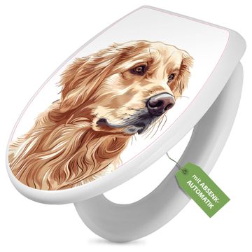 Toilettendeckel weiß mit Absenkautomatik Motiv Golden Retriever