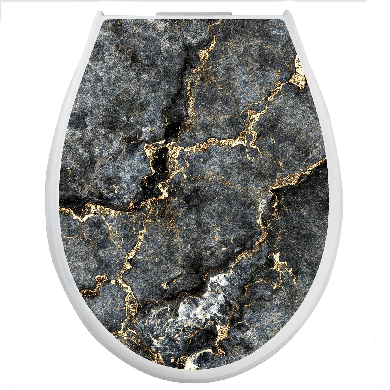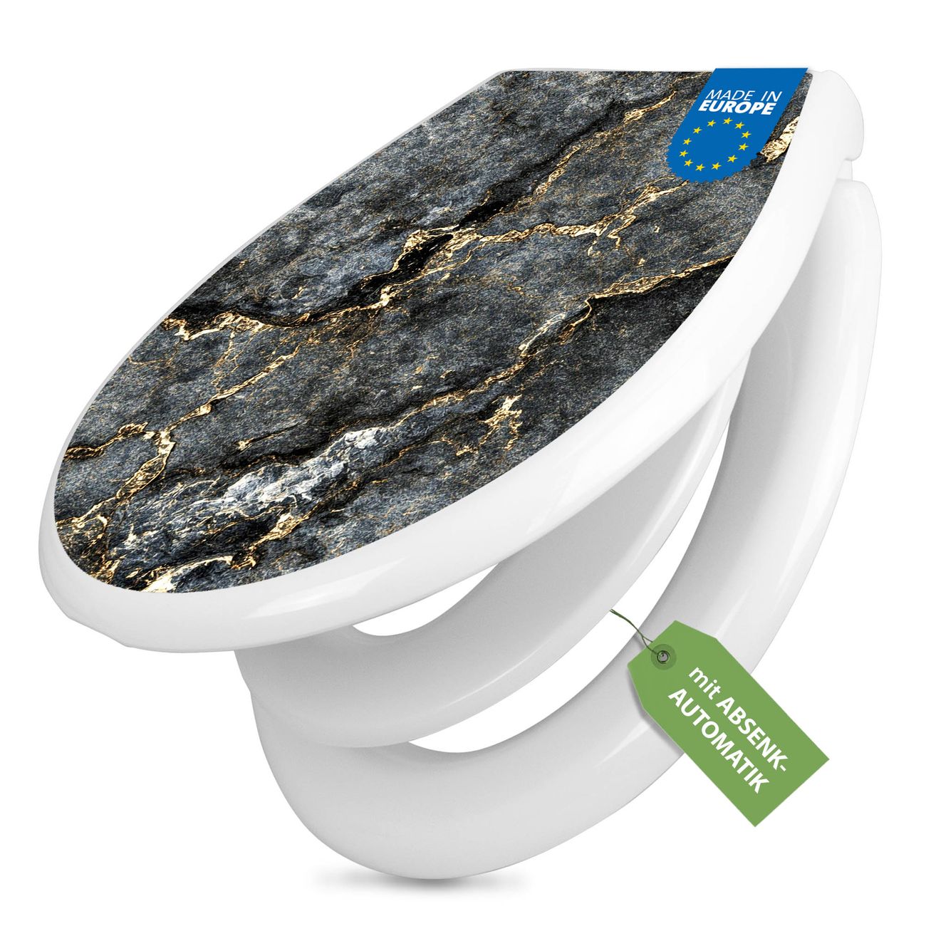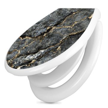 Toilettendeckel weiß mit Absenkautomatik Motiv grauer Marmor mit Gold 2