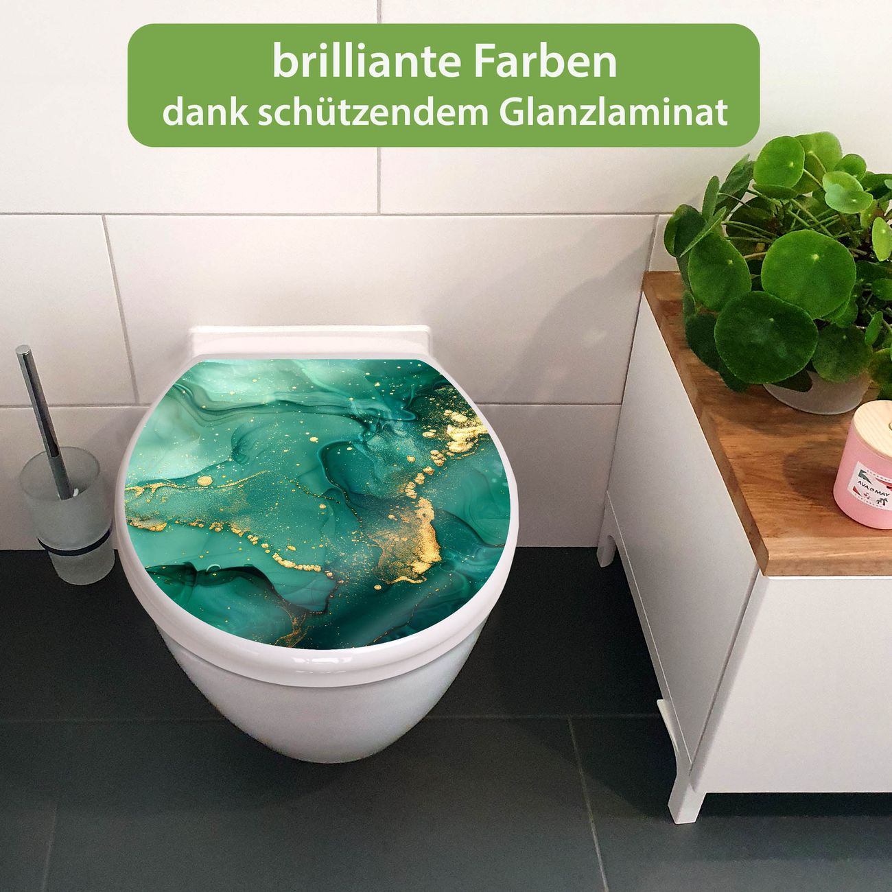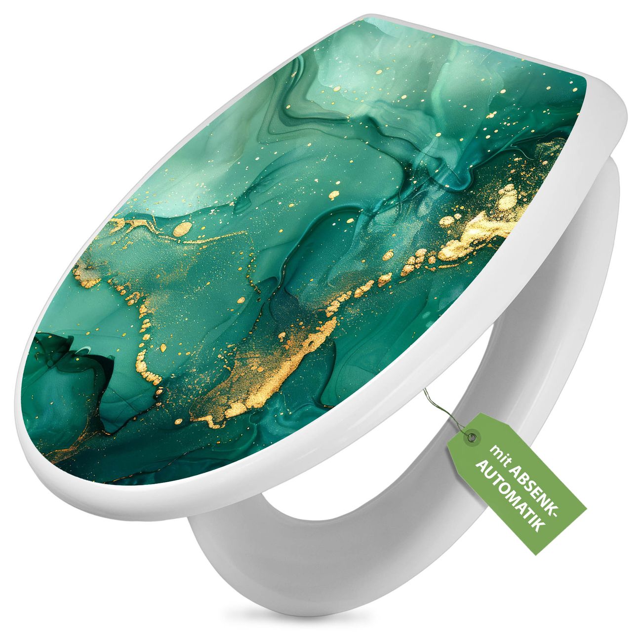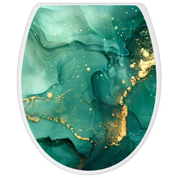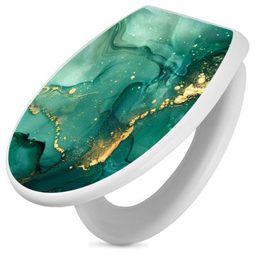 Toilettendeckel weiß mit Absenkautomatik Motiv Grüner Marmor mit Gold 1