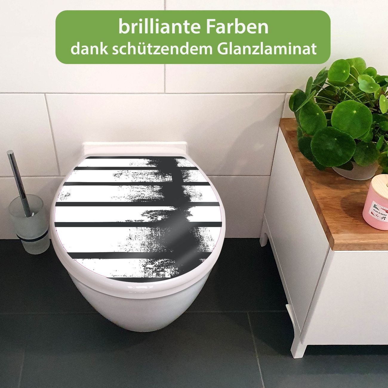 Toilettendeckel weiß mit Absenkautomatik Motiv Grunge Streifen