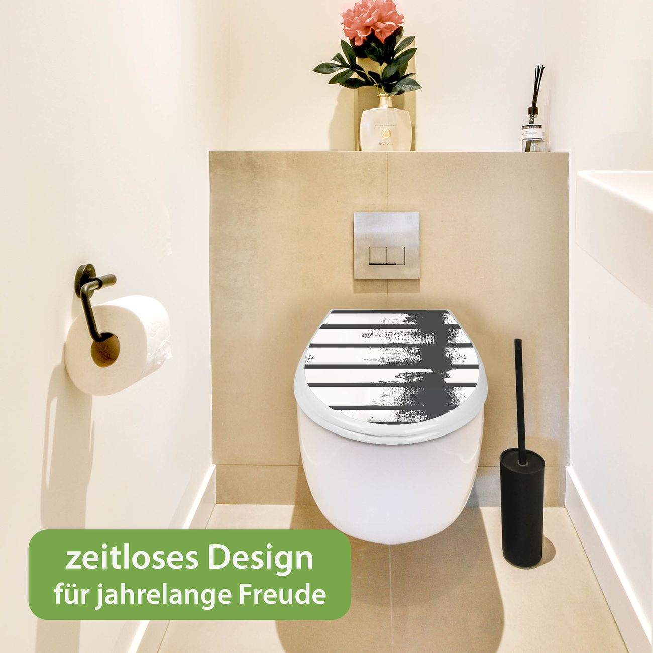 Toilettendeckel weiß mit Absenkautomatik Motiv Grunge Streifen