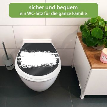 FUNKTION:Mit dem banjado Familien WC Sitz mit Absenkautomatik und dem Motiv Motiv Grunge Swirl Hintergrund verbinden Sie Design mit Funktionalität. Sie erhalten den Toilettendeckel in bewährt guter Qualität mit Montagematerial passend auf alle Euro-WC-Becken. Die Gesamtgröße beträgt 37,1cm x 44,9cm x 5cm, die Grundfarbe ist weiß.</p> DESIGN:Der Klodeckel in weiß mit Motiv Motiv Grunge Swirl Hintergrund hat eine ansprechende Optik, eine besondere Form und ist sehr stabil. Das Motiv besteht aus einer farbbrillianten Motivfolie, die durch ein Schutzlaminat zusätzlich vor Kratzern schützt. Der integrierte Kindersitz fügt sich harmonisch ein. DETAILS:Der Toilettensitz mit Soft Close besteht aus hochwertigem Polypropylen, ist geruchlos, ungiftig und kann mit handelsüblicher Seife gereinigt werden. Die Montage kann von von oben oder von unten erfolgen und ist kinderleicht. NUTZEN:Mit Hilfe der detaillierten Aufbauanleitung ermöglichen wir eine schnelle und unkomplizierte Montage. Die banjado Klobrille ist universell geeignet für alle Euro-WC-Schüsseln. Der Kindersitz kann unkompliziert entfernt werden. BANJADO:Ihr WC-Deckel wird in Sachsen in einer kleinen Manufaktur von Hand veredelt. Die Motivfolie ist lösungsmittelfrei und schutzlaminiert für einen langen Halt. Wir wünschen viel Freude bei der Auswahl eines schönen Motivs.