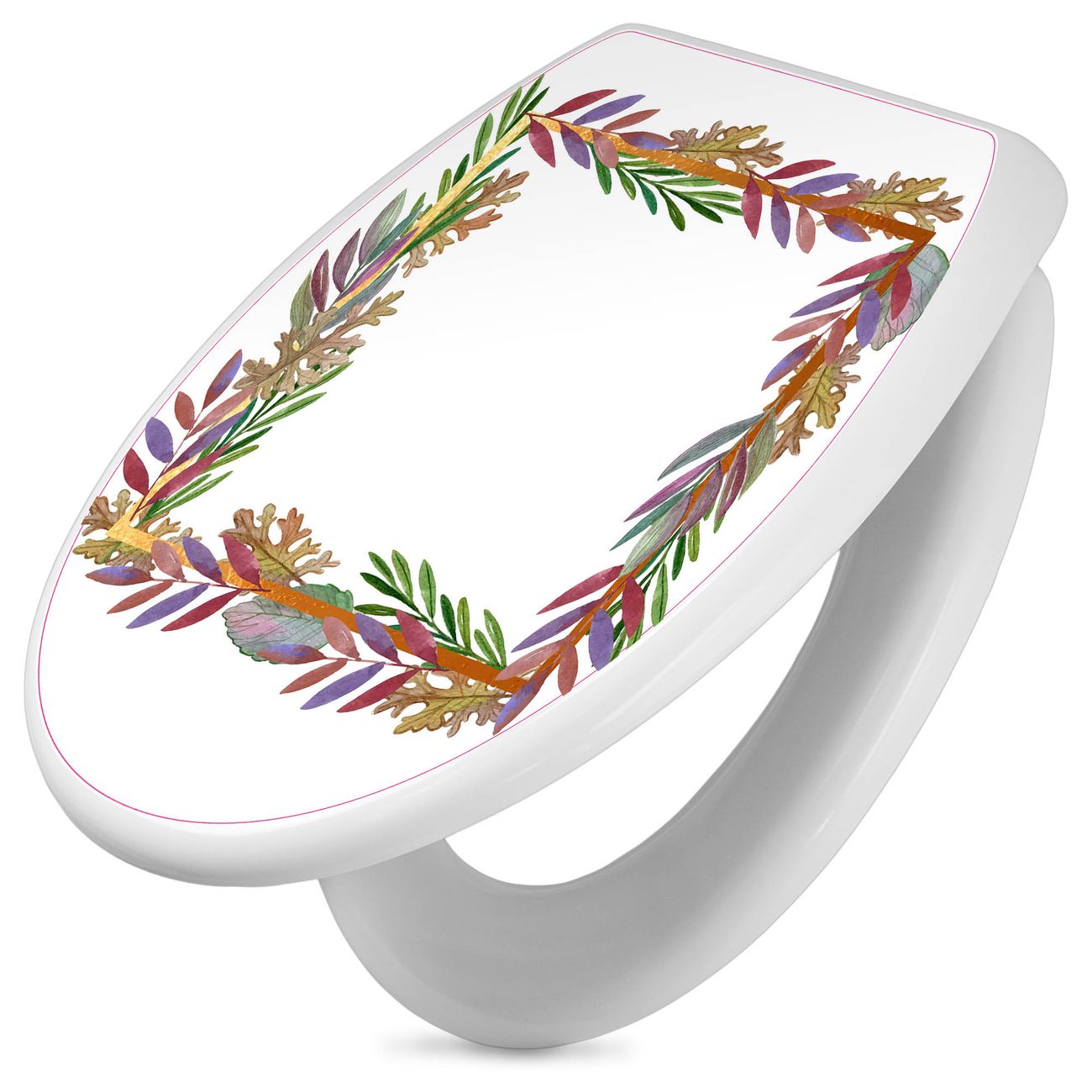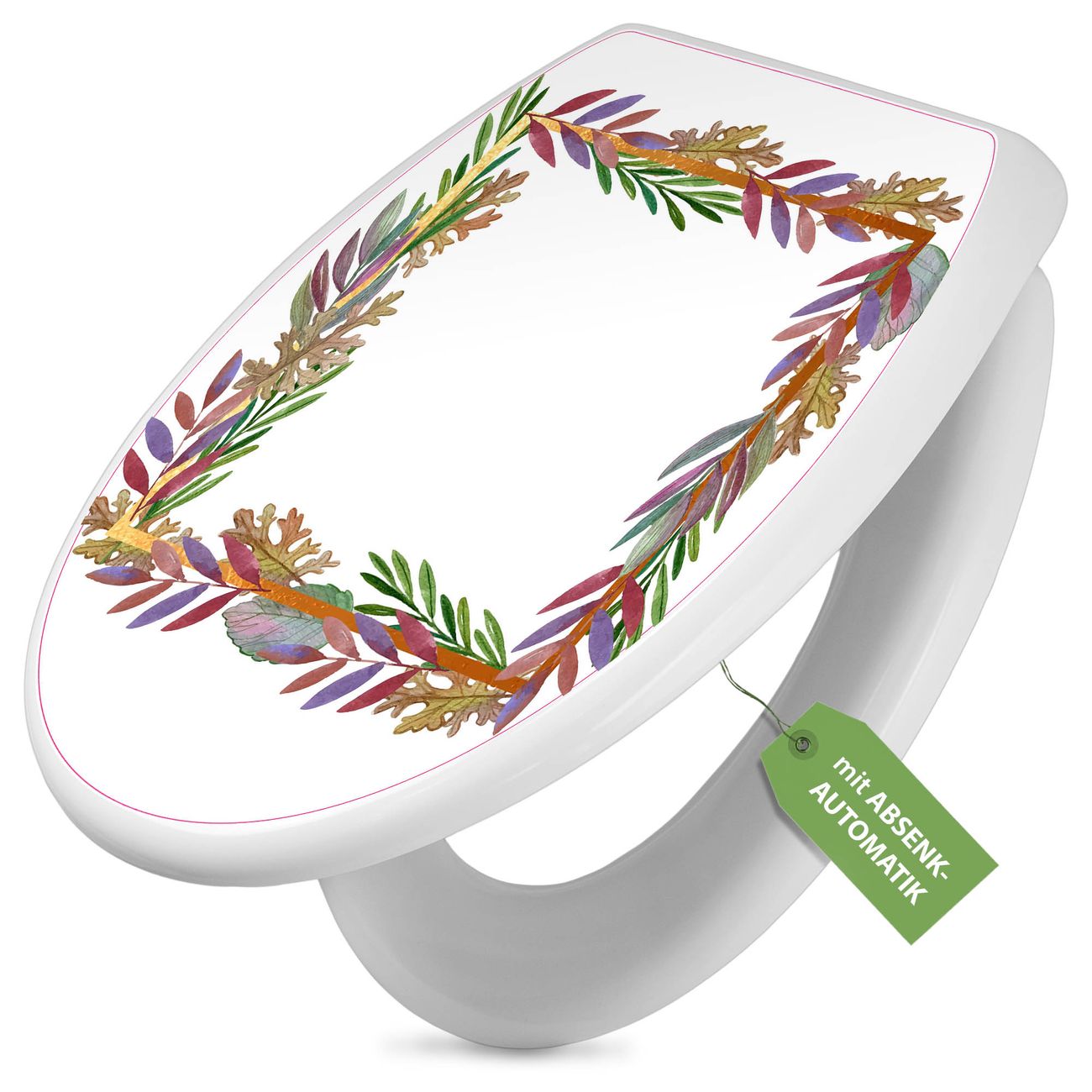 Toilettendeckel weiß mit Absenkautomatik Motiv Herbstliche Blattgirlande