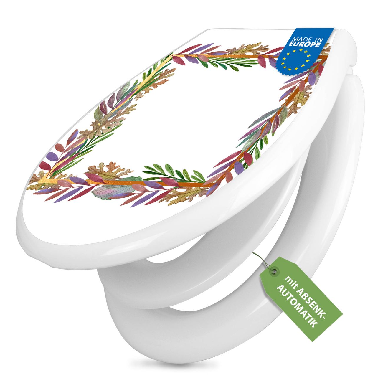 Toilettendeckel weiß mit Absenkautomatik Motiv Herbstliche Blattgirlande