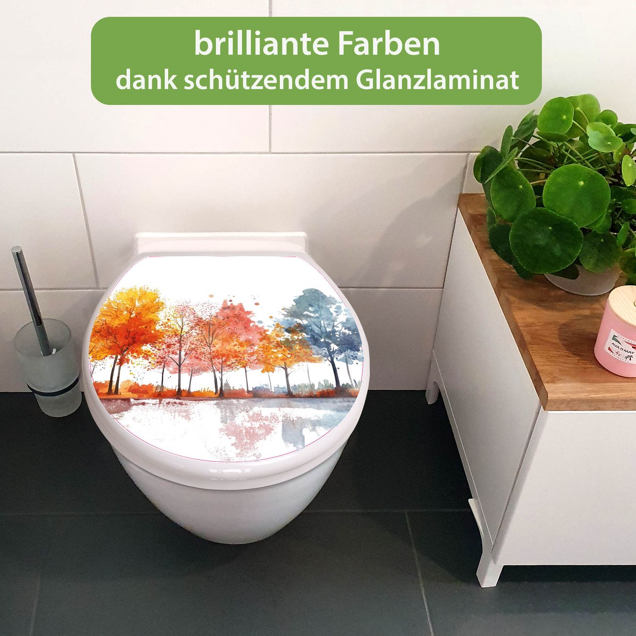 Toilettendeckel weiß mit Absenkautomatik Motiv Herbstlicher Baumzauber