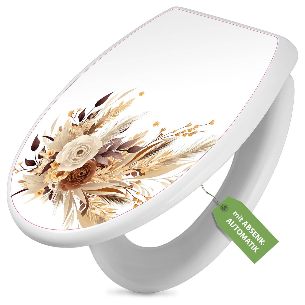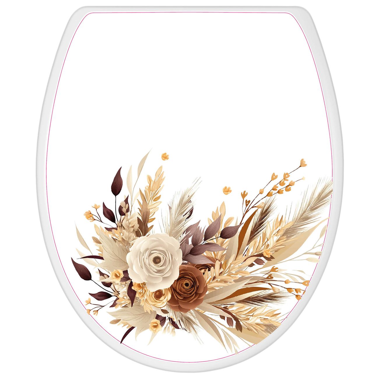 Toilettendeckel weiß mit Absenkautomatik Motiv Herbstlicher Blumenstrauß