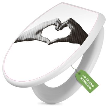 Toilettendeckel weiß mit Absenkautomatik Motiv Herzhände