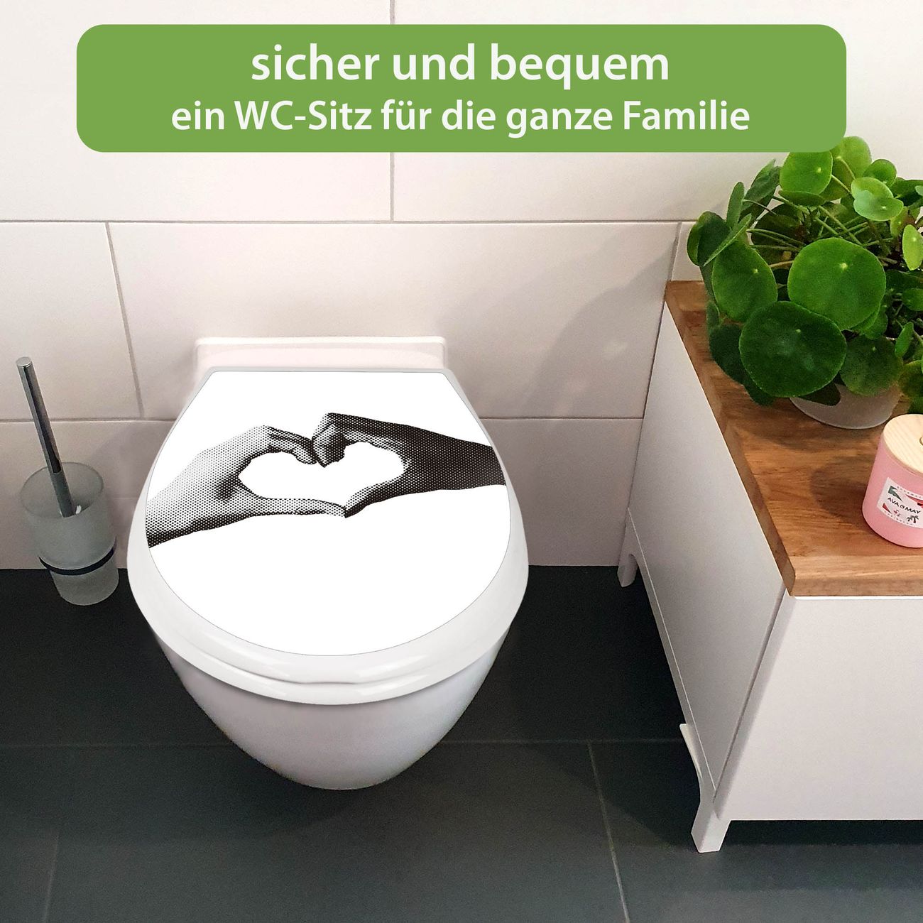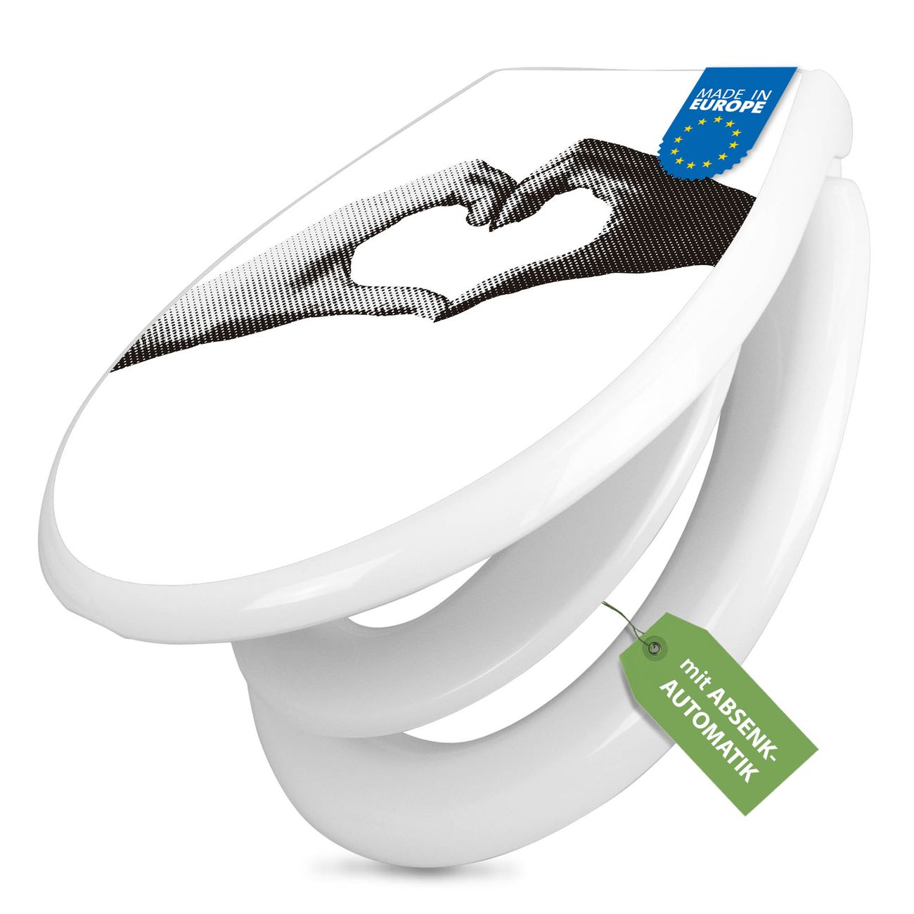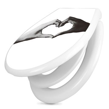 Toilettendeckel weiß mit Absenkautomatik Motiv Herzhände