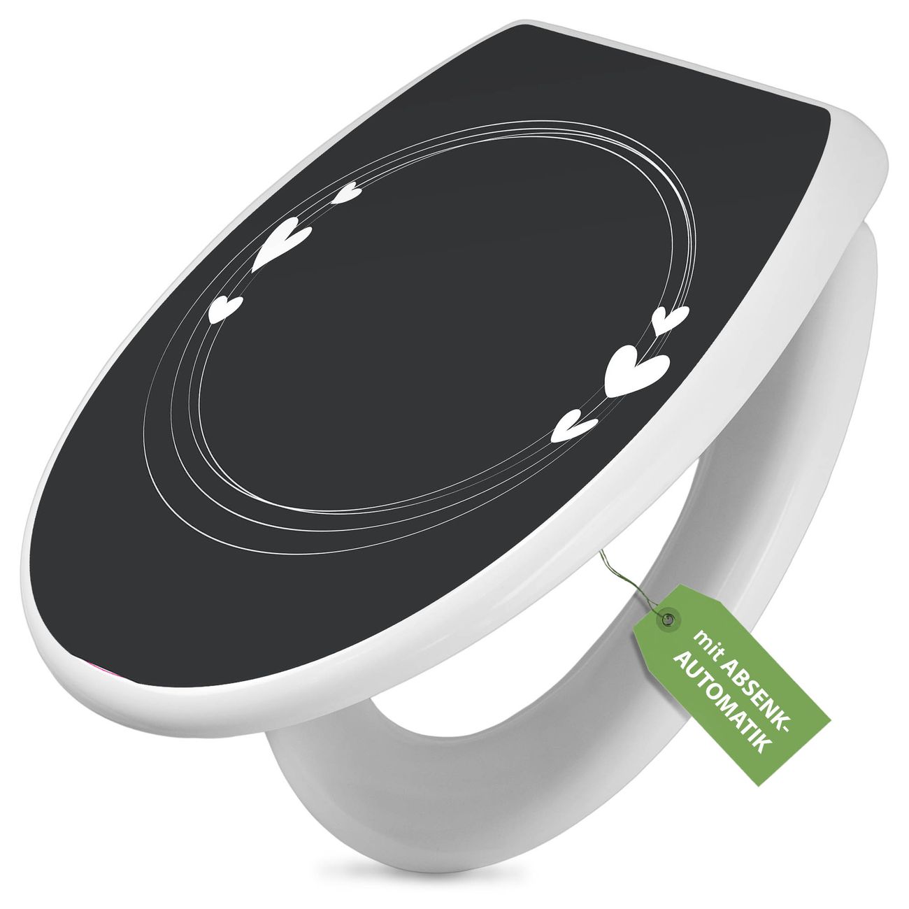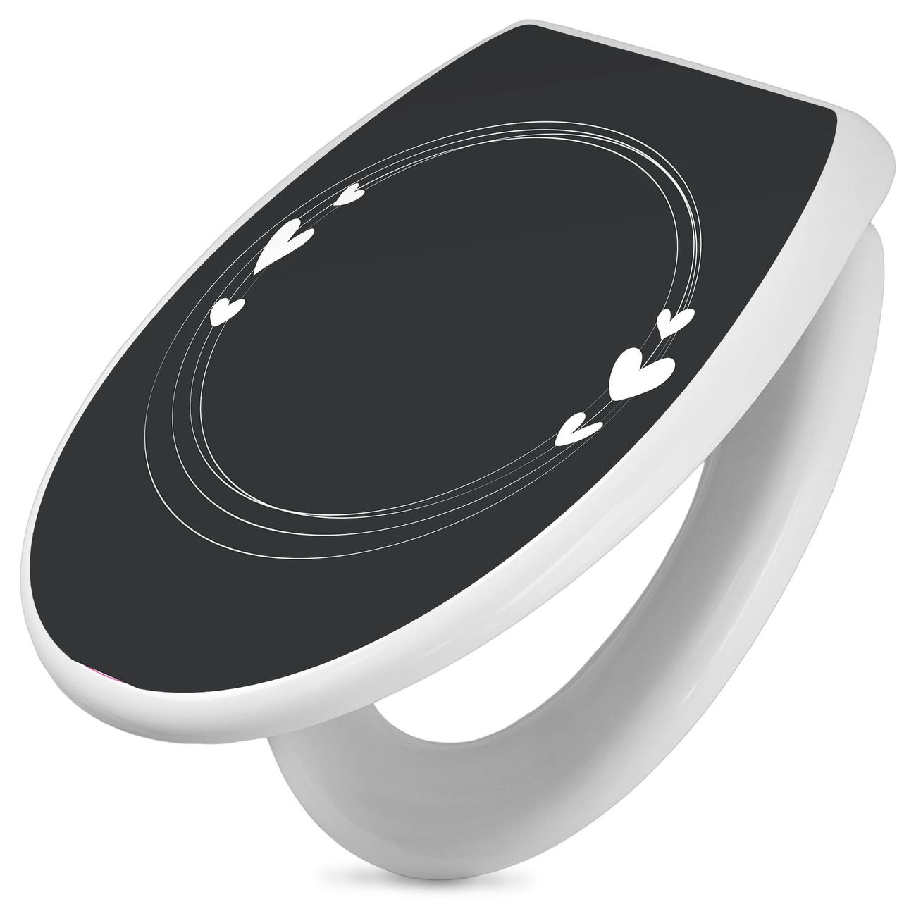 Toilettendeckel weiß mit Absenkautomatik Motiv Herzrahmen