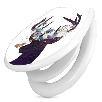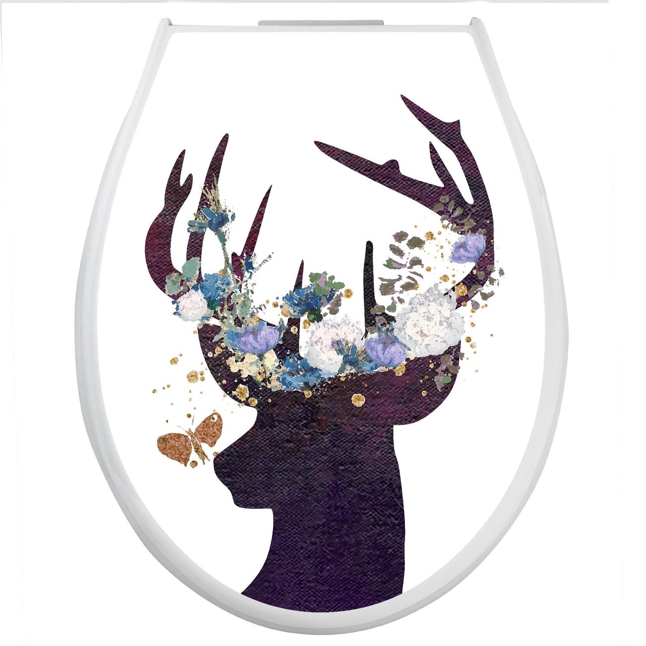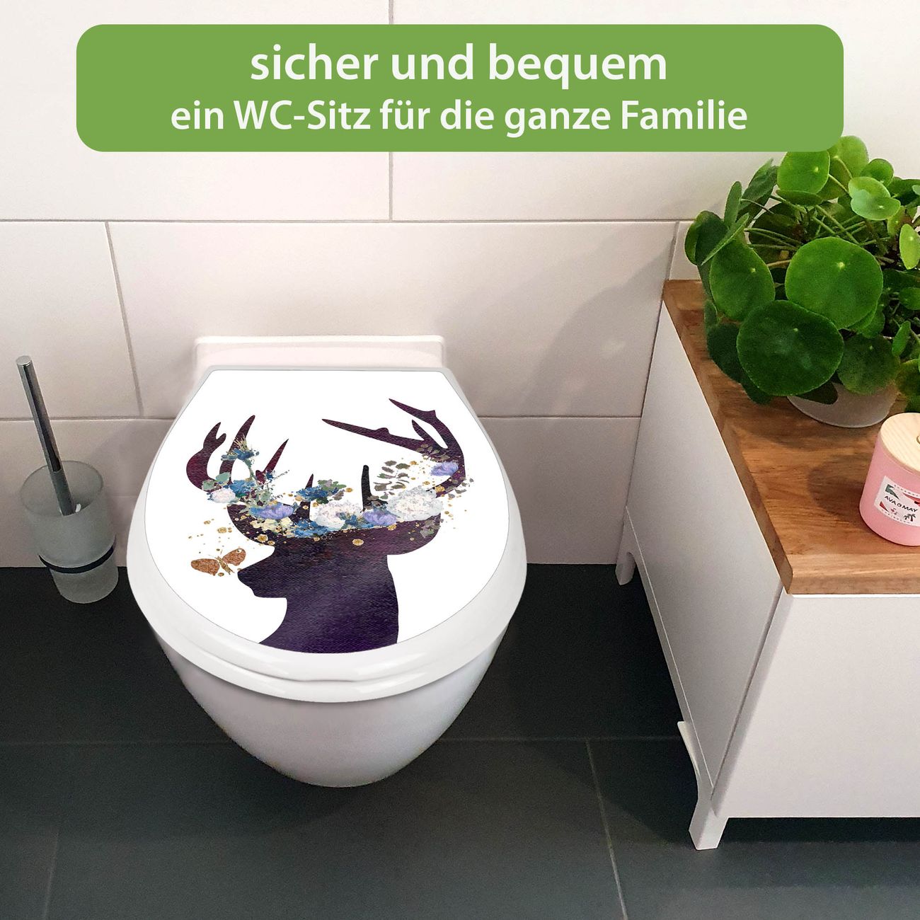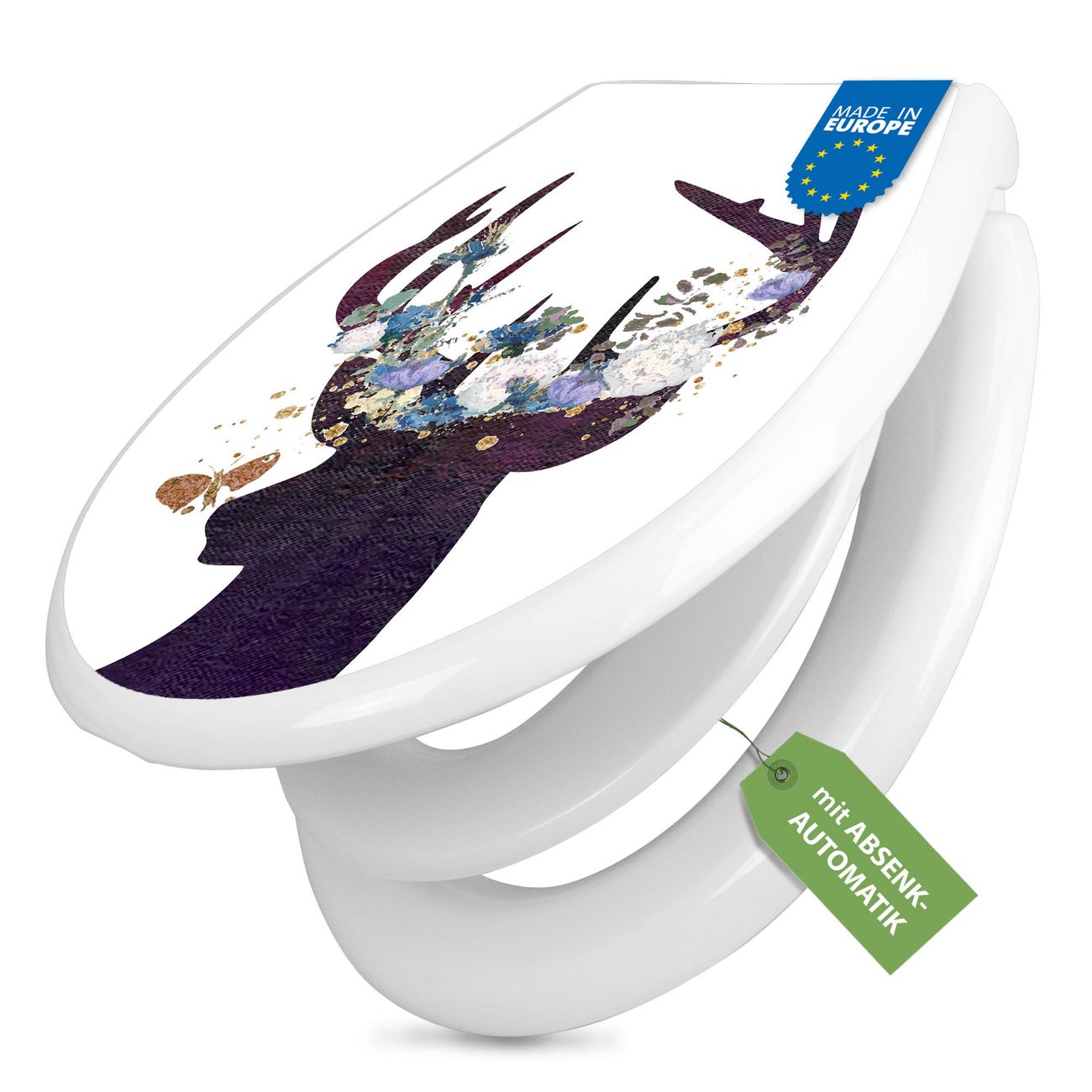 Toilettendeckel weiß mit Absenkautomatik Motiv Hirsch Blumengeweih
