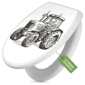Toilettendeckel weiß mit Absenkautomatik Motiv Historischer Traktor